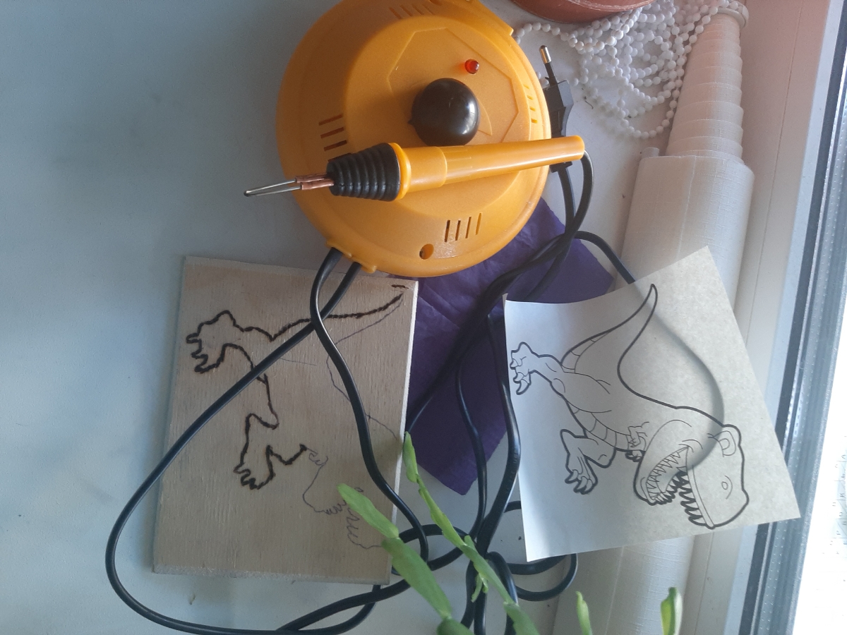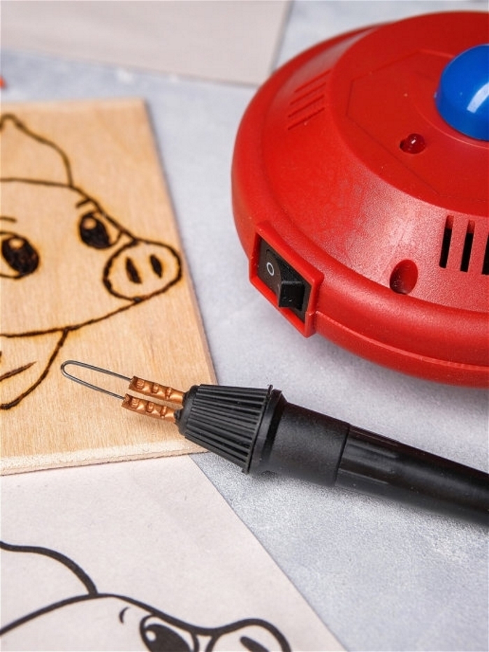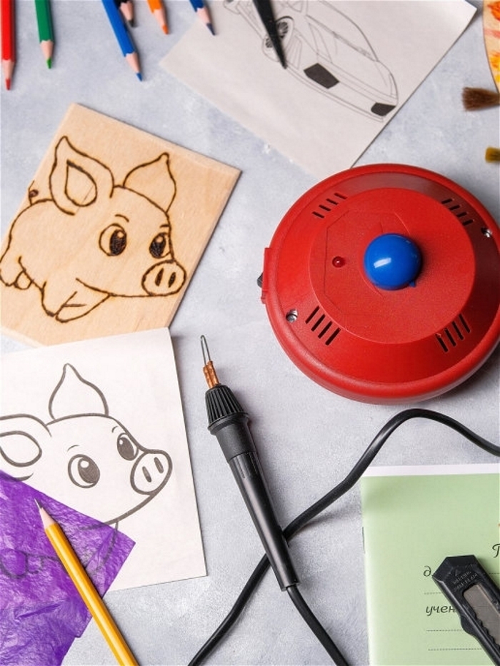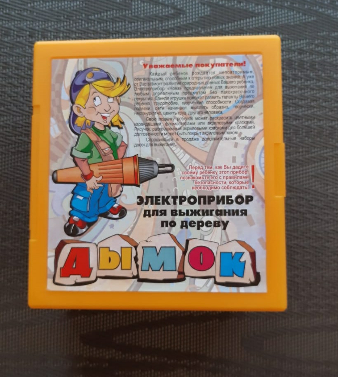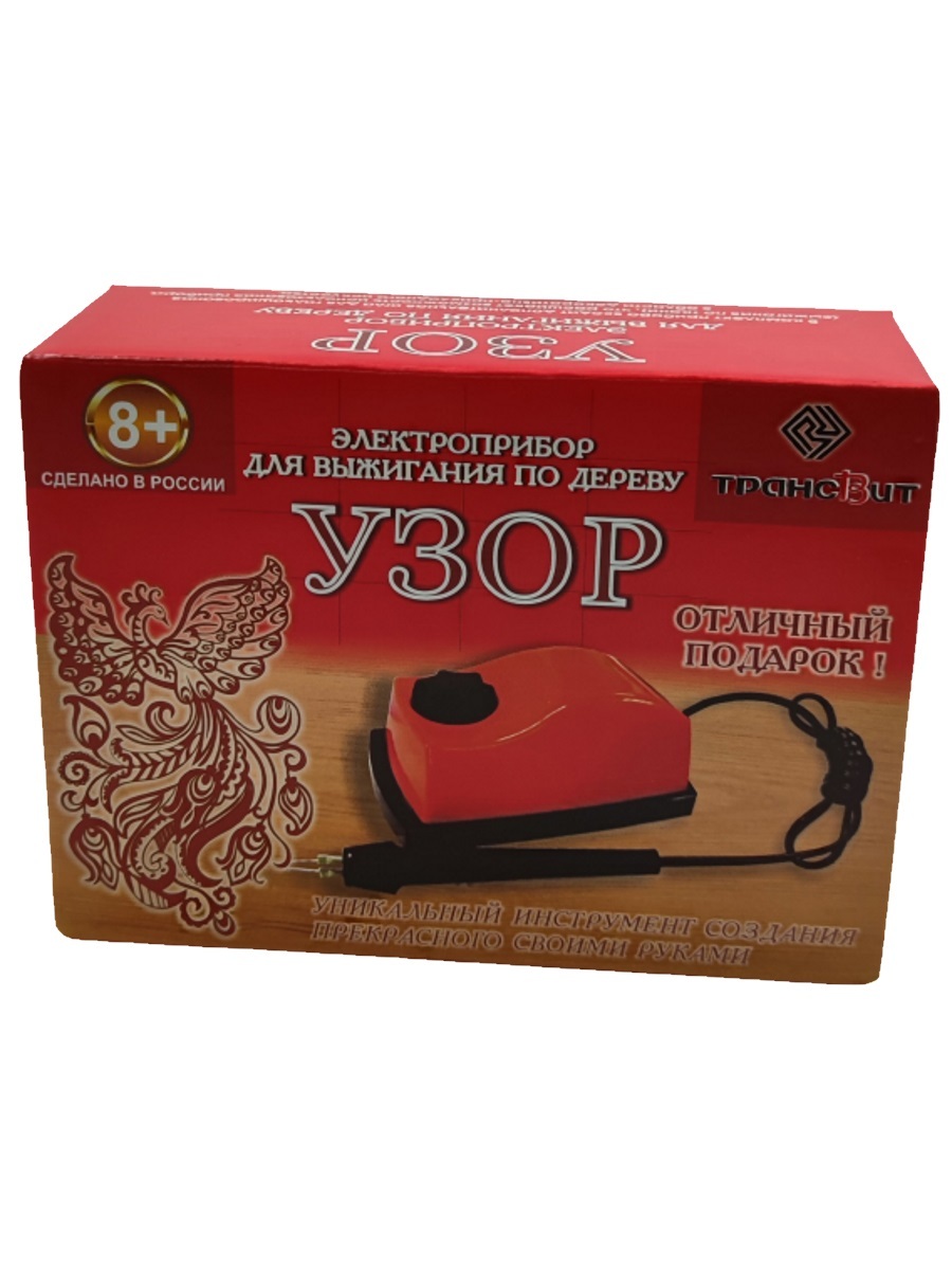 Прибор для выжигания по дереву "Орбита" + дощечка, переводная бумага и 3 рисунка в подарок