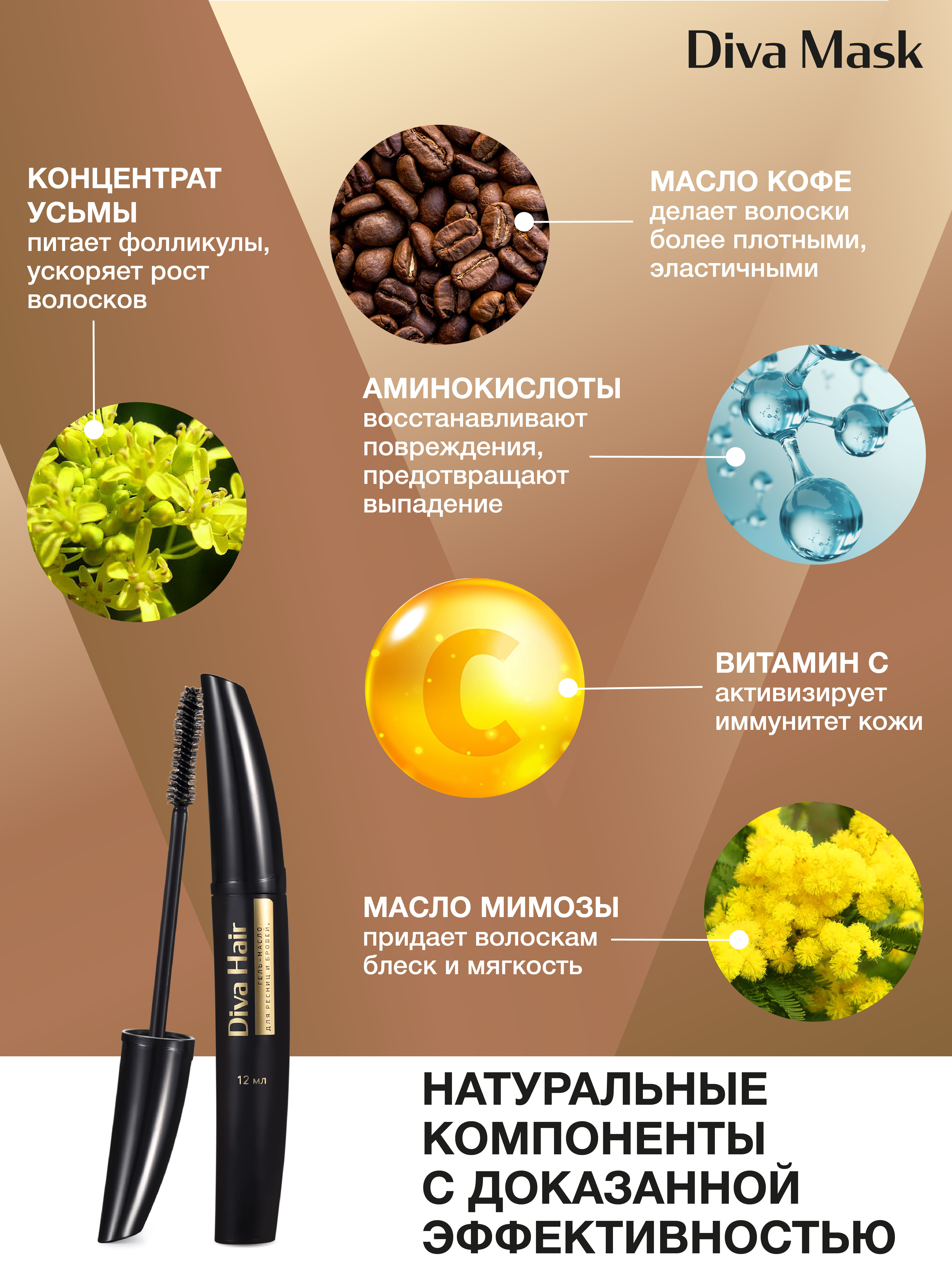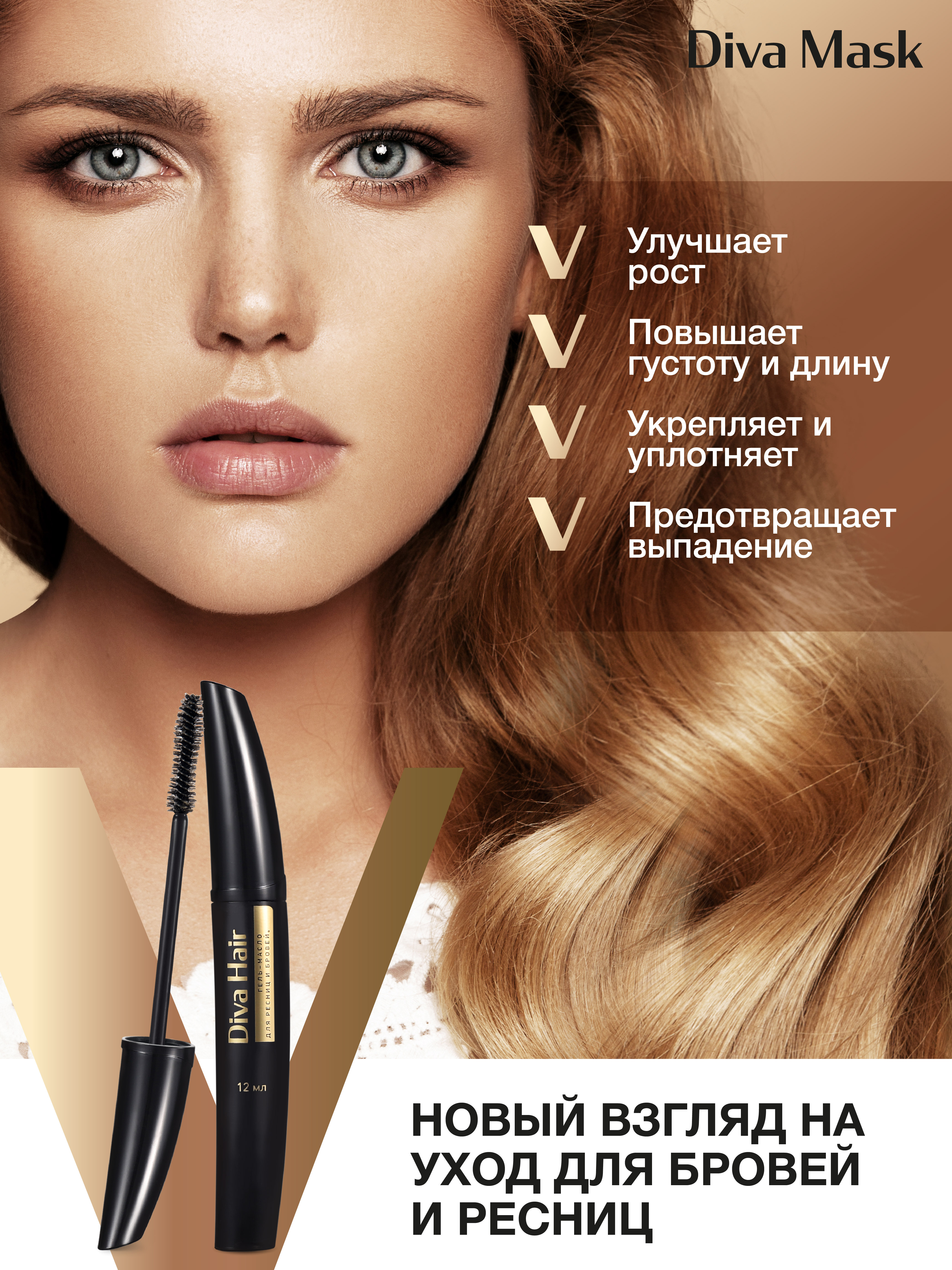 Diva Mask Масло для ресниц и бровей Diva Hair с комплексом аминокислот, маслом усьмы и мимозы, 12 мл