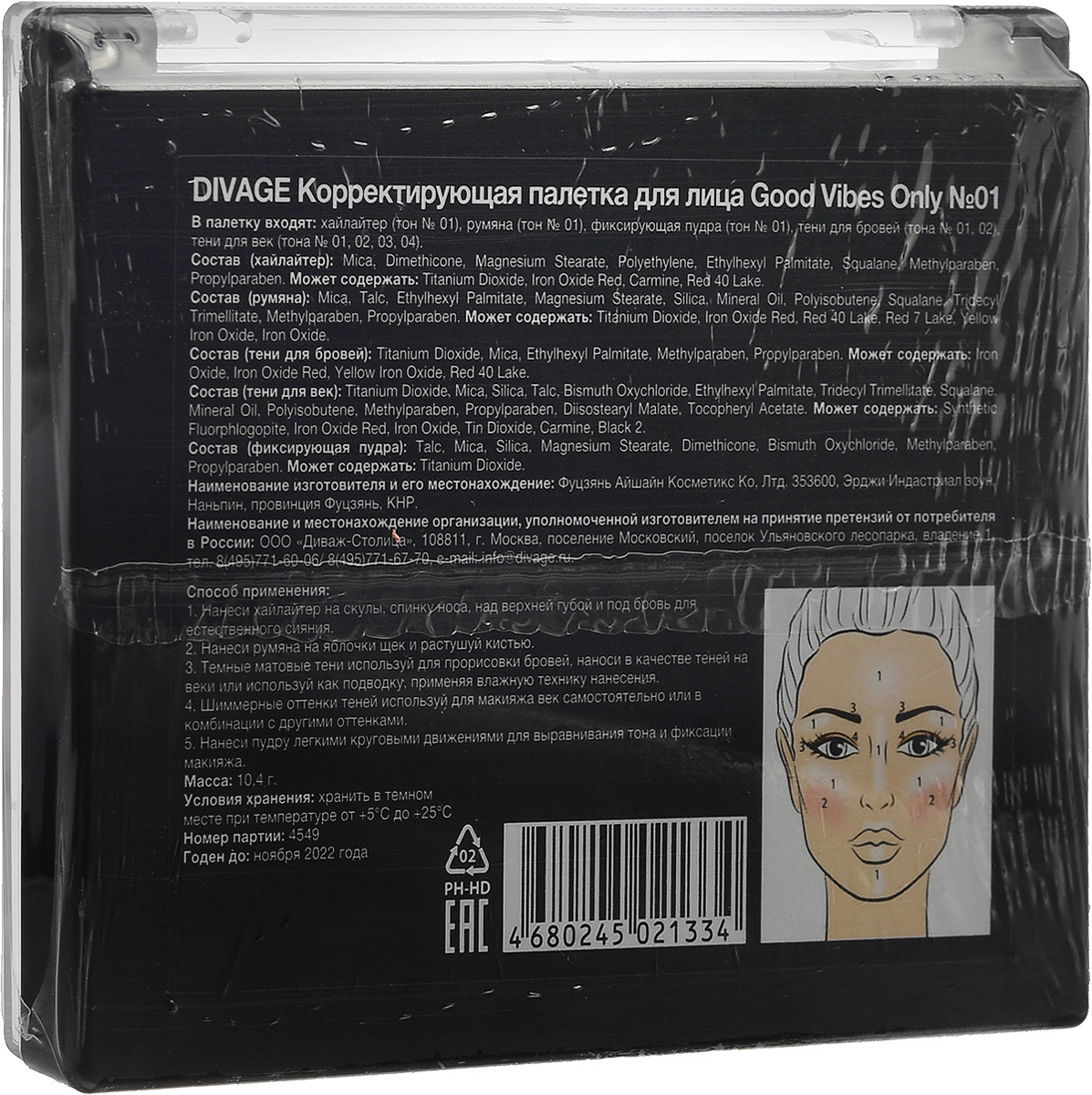 Divage Good Vibes Only Палетка для лица корректирующая, № 1
