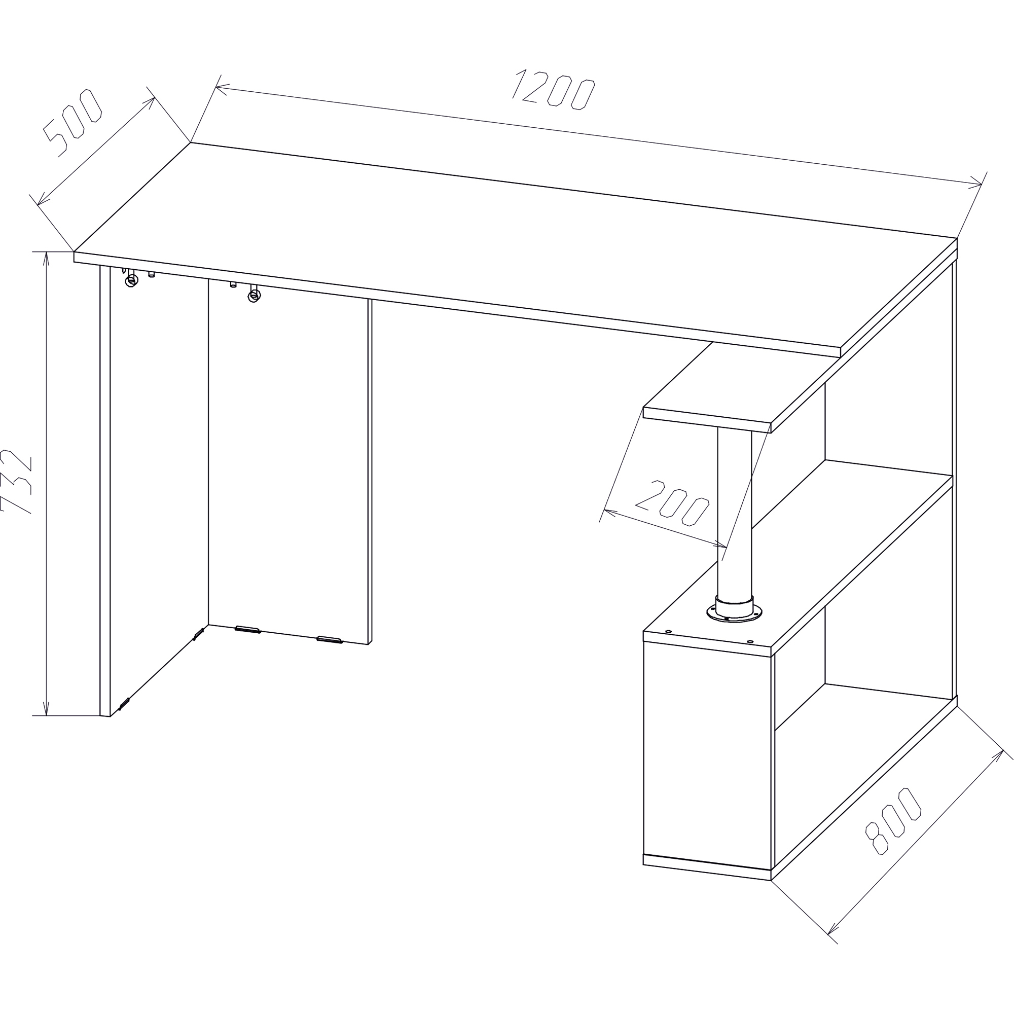 Письменный стол, компьютерный стол с полками Island 1200 Дуб Сонома, 120*85,6 см.