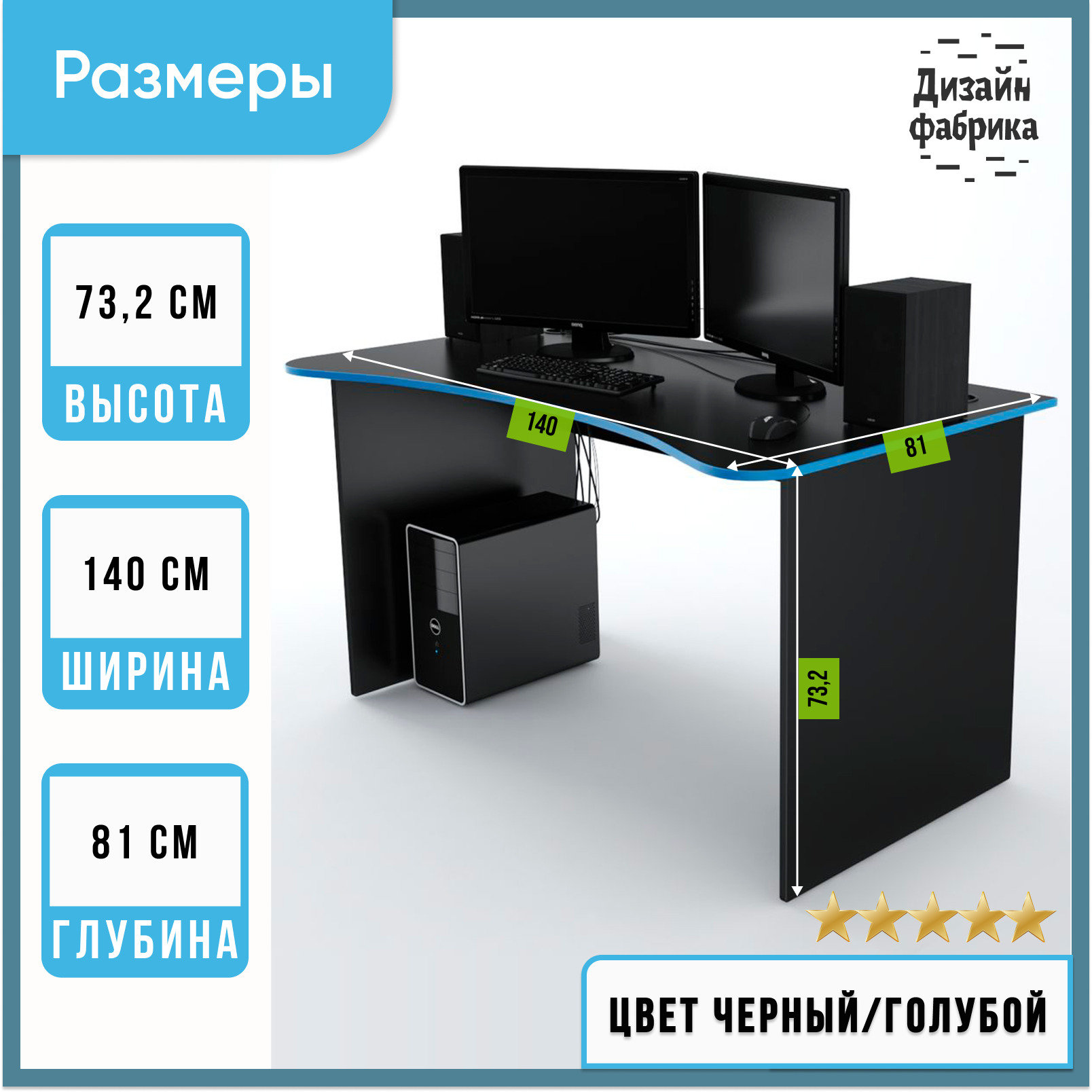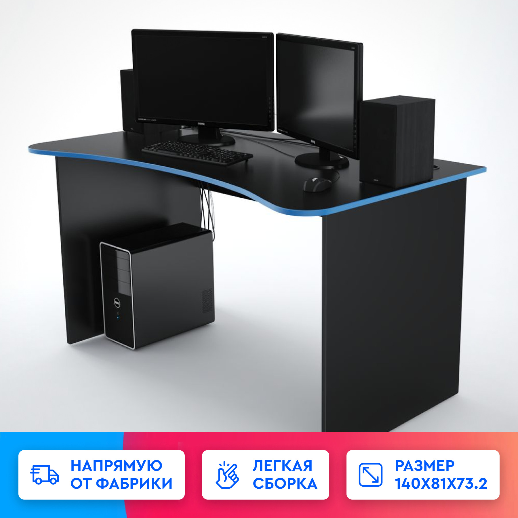 Письменный стол, компьютерный стол SURF 1400 Черный/Голубой, 140*81 см.