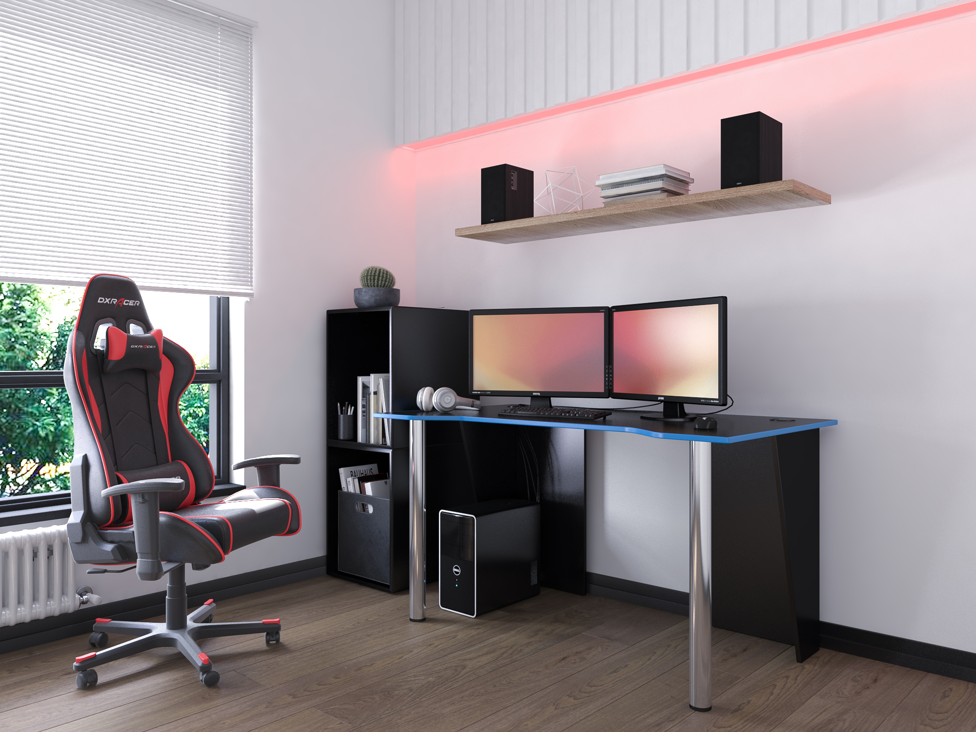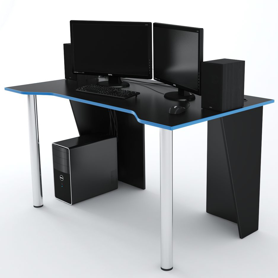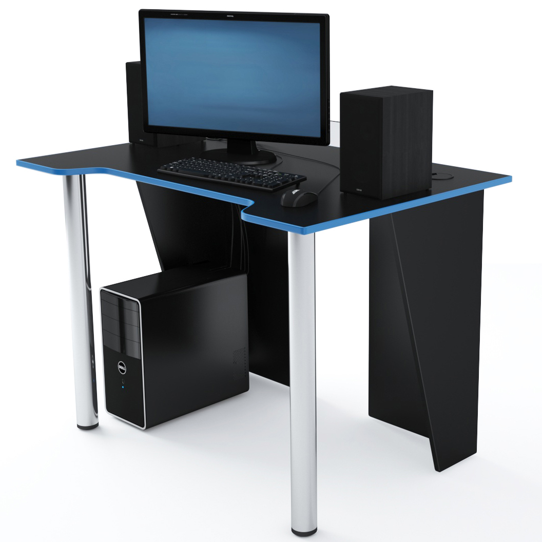 Письменный стол, компьютерный стол Surf 1100 Черный/Голубой, 110*74 см.