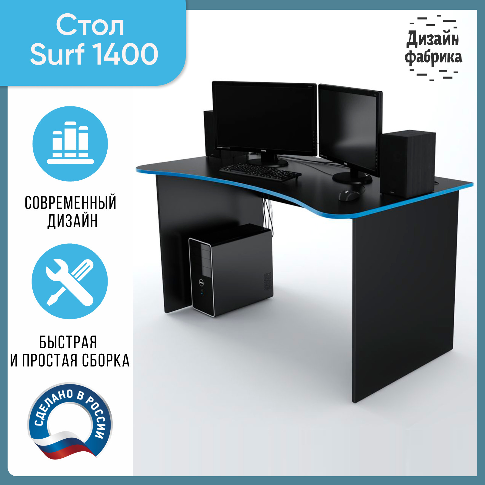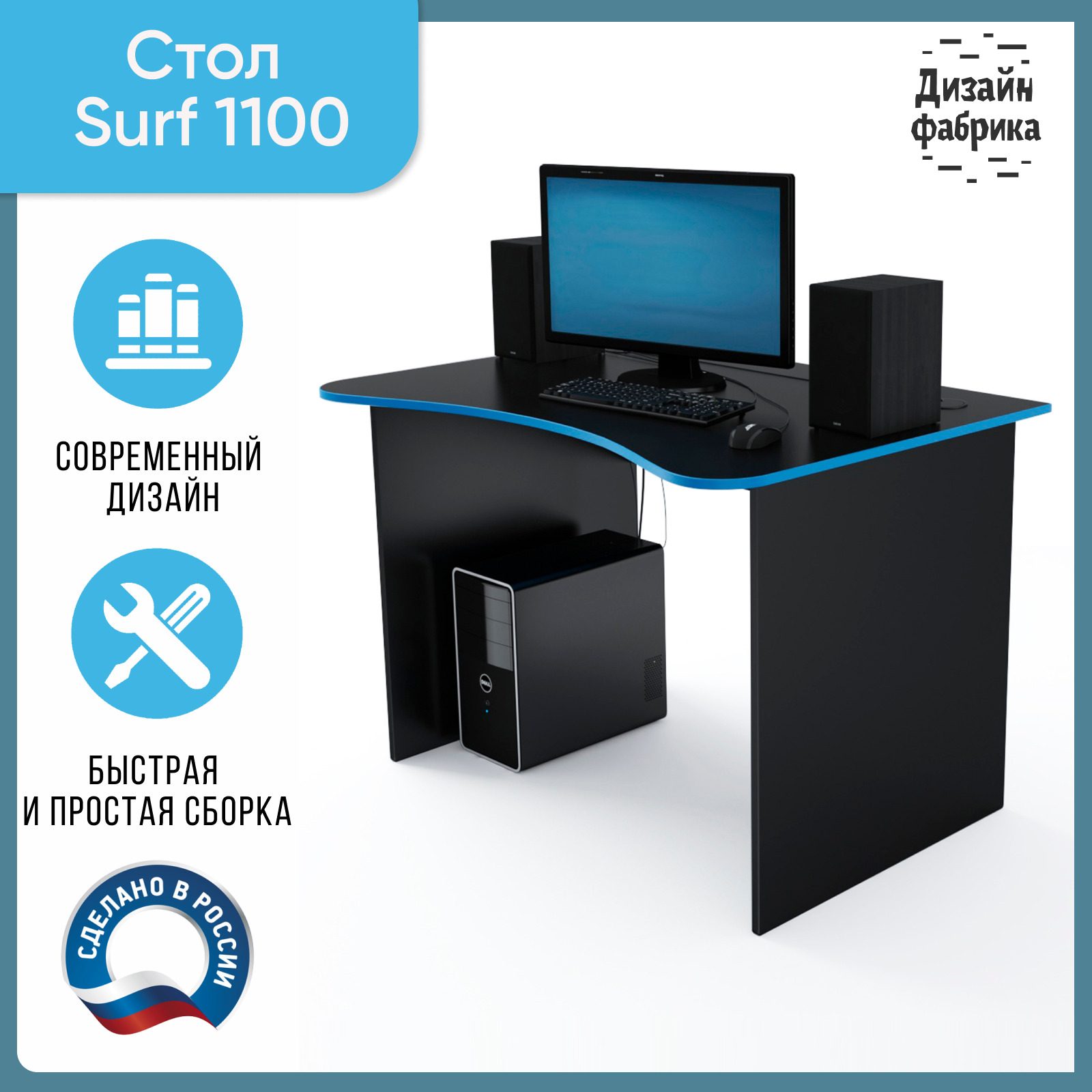 Геймерский компьютерный стол, Компьютерный стол Дизайн Фабрика Surf 1100 Черный, 110х74х73.2 см