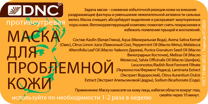 DNC Маска Активированный уголь для очистки пор, для проблемной кожи, для тинэйджеров, 50 мл