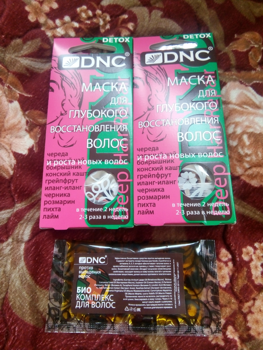 Набор: DNC Маска для глубокого восстановления волос 3*15 мл*2 шт + подарок Масло для волос 15 мл