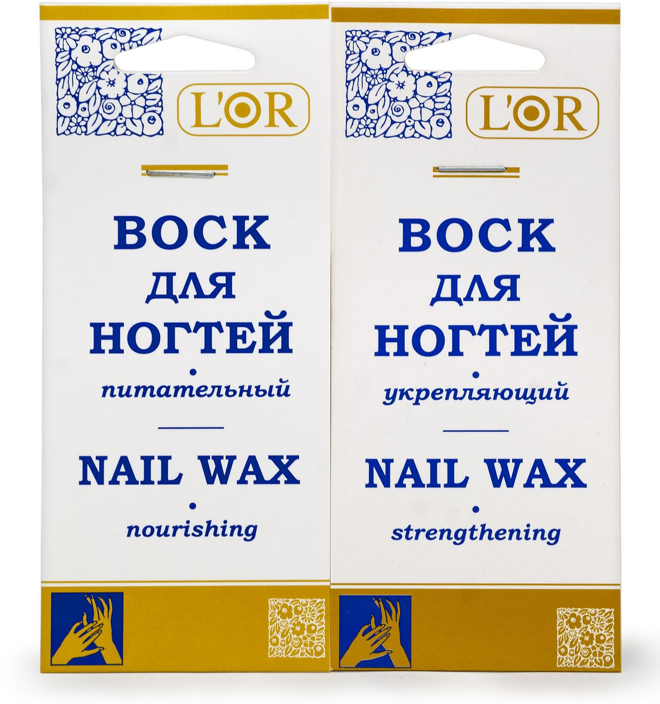 DNC Набор, серия L'Or, Воск для ногтей питательный, 5 мл, Воск для ногтей укрепляющий, 5 мл
