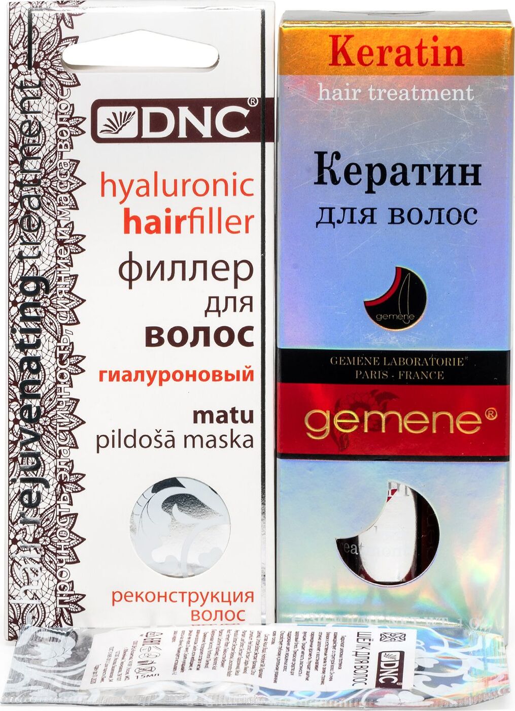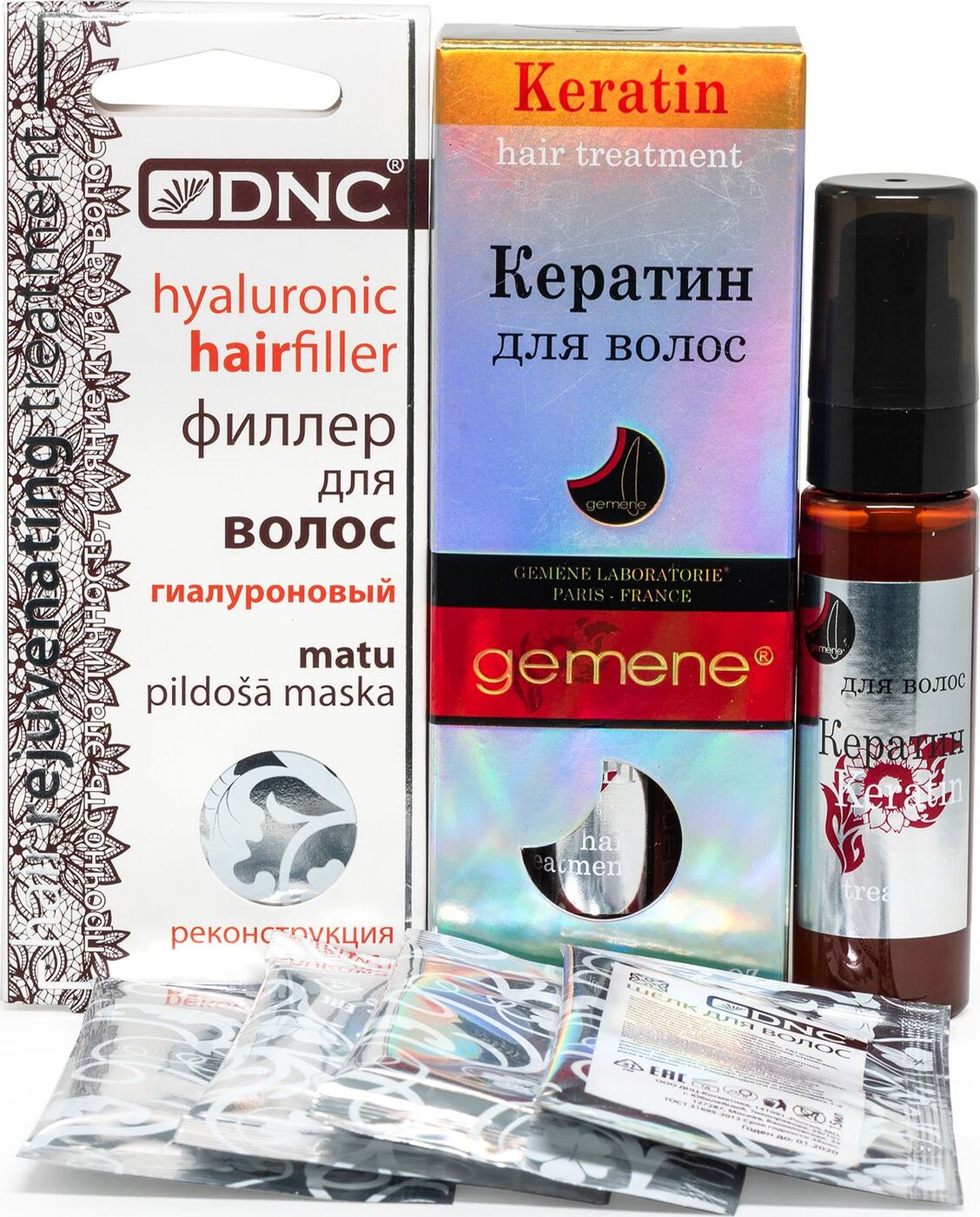DNC Набор: Кератин для волос Gemene, 30 мл + Филлер для волос, 3 по 15 мл + Подарок Шелк для волос
