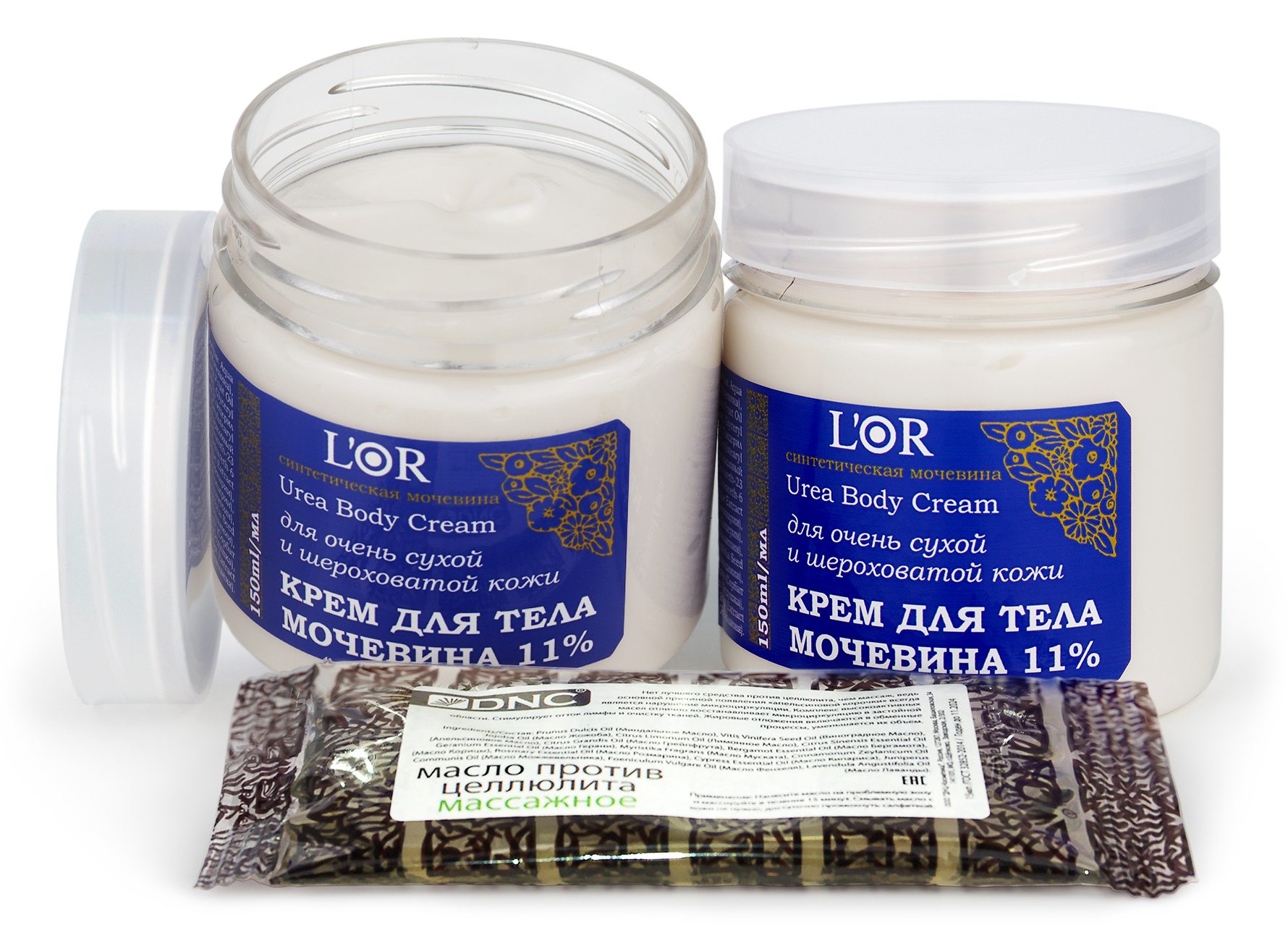 DNC, серия L'Or, набор: Крем для Тела с Мочевиной 11%, 150 мл 2 шт. и Презент Масло массажное