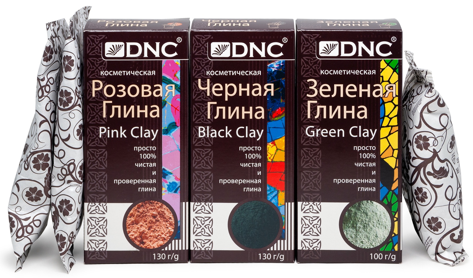 Набор: DNC Глина Розовая 130 г, Глина Черная 130г, Глина Зеленая 100 г