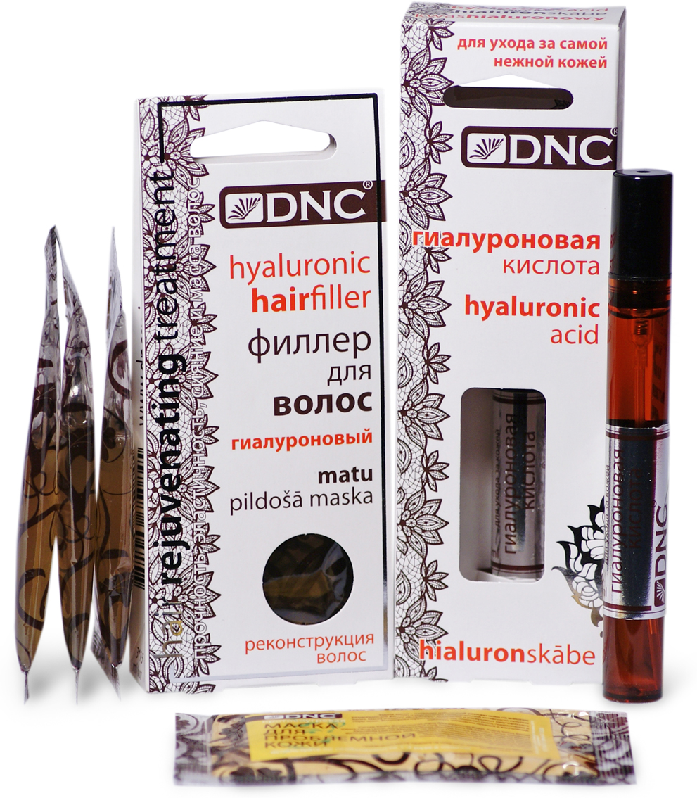 DNC Набор: Гиалуроновая кислота, 10 мл, Филлер для волос, 3 х 15 мл + Подарок Маска для лица, 15 мл