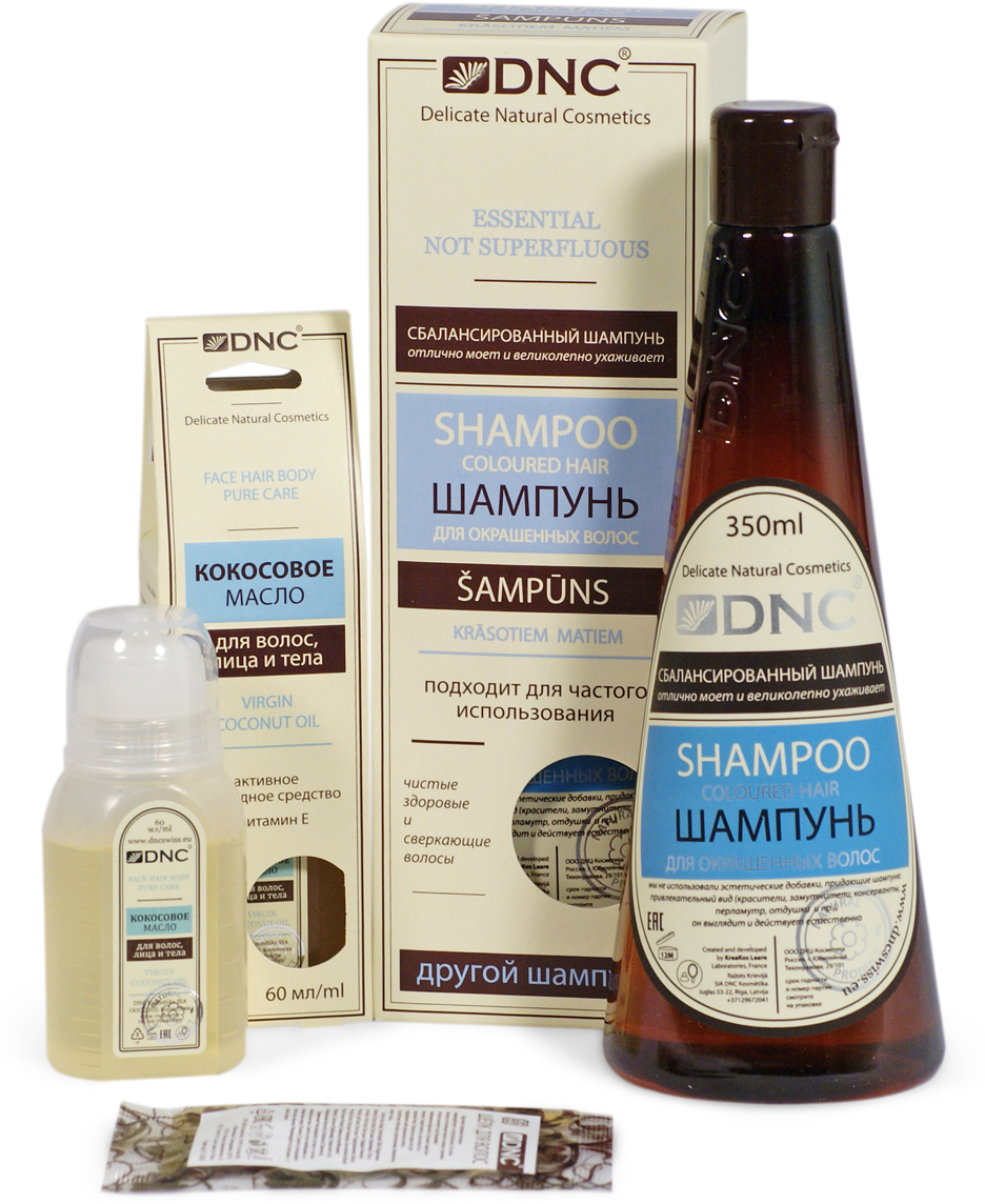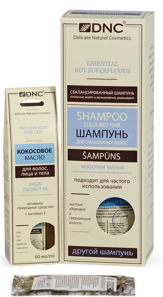 DNC, Шампунь для Окрашенных Волос 350мл; Кокосовое масло 60мл и Шелк для волос 10 мл