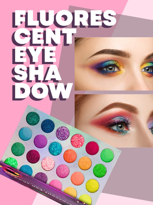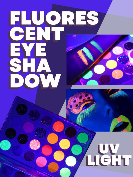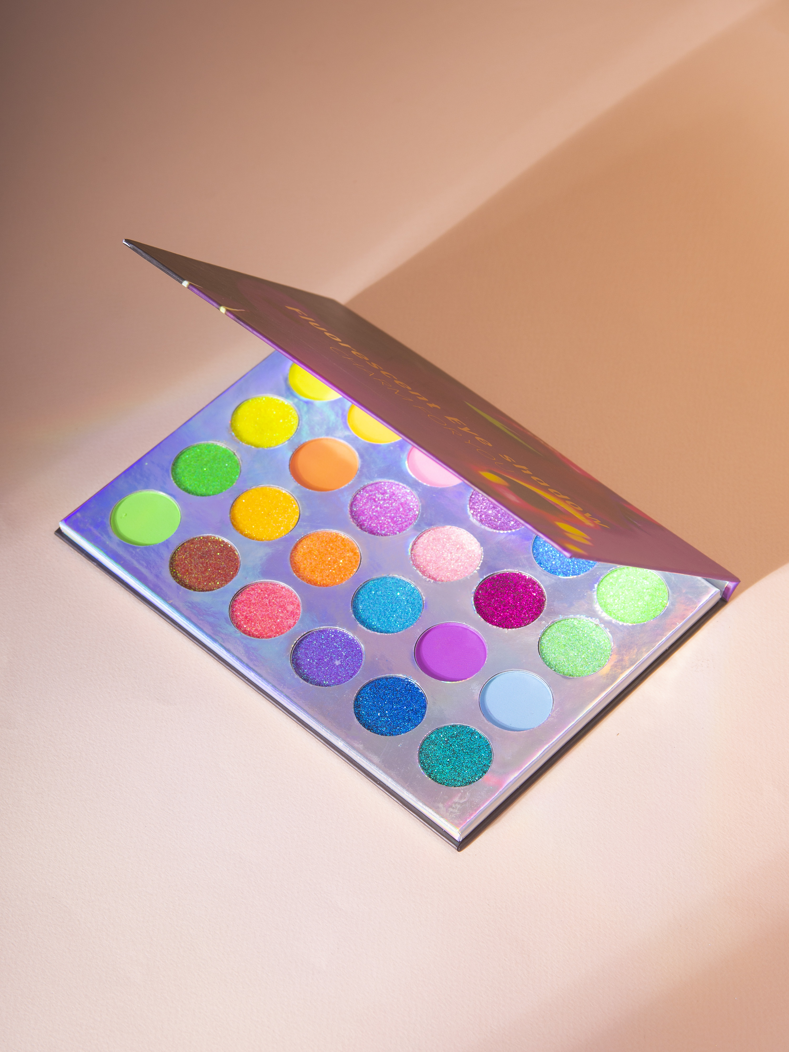 Тени для век / Палетка теней / Глиттер Неоновое сияние, 24 сияющих в темноте цвета