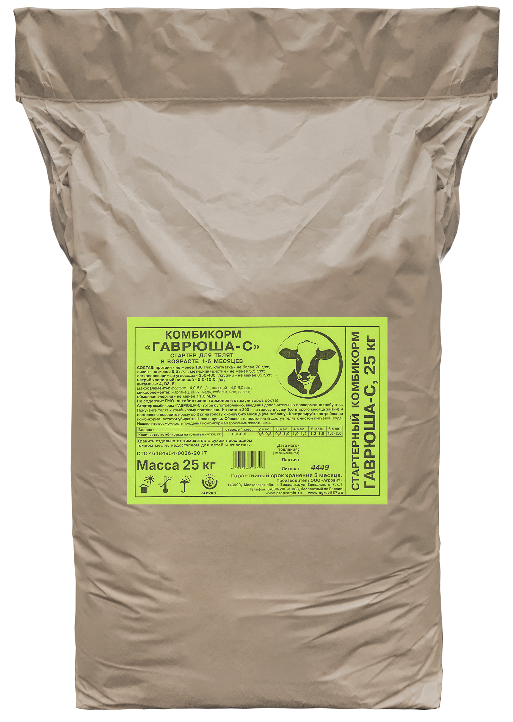 Комбикорм Гаврюша-С стартер для телят 25кг