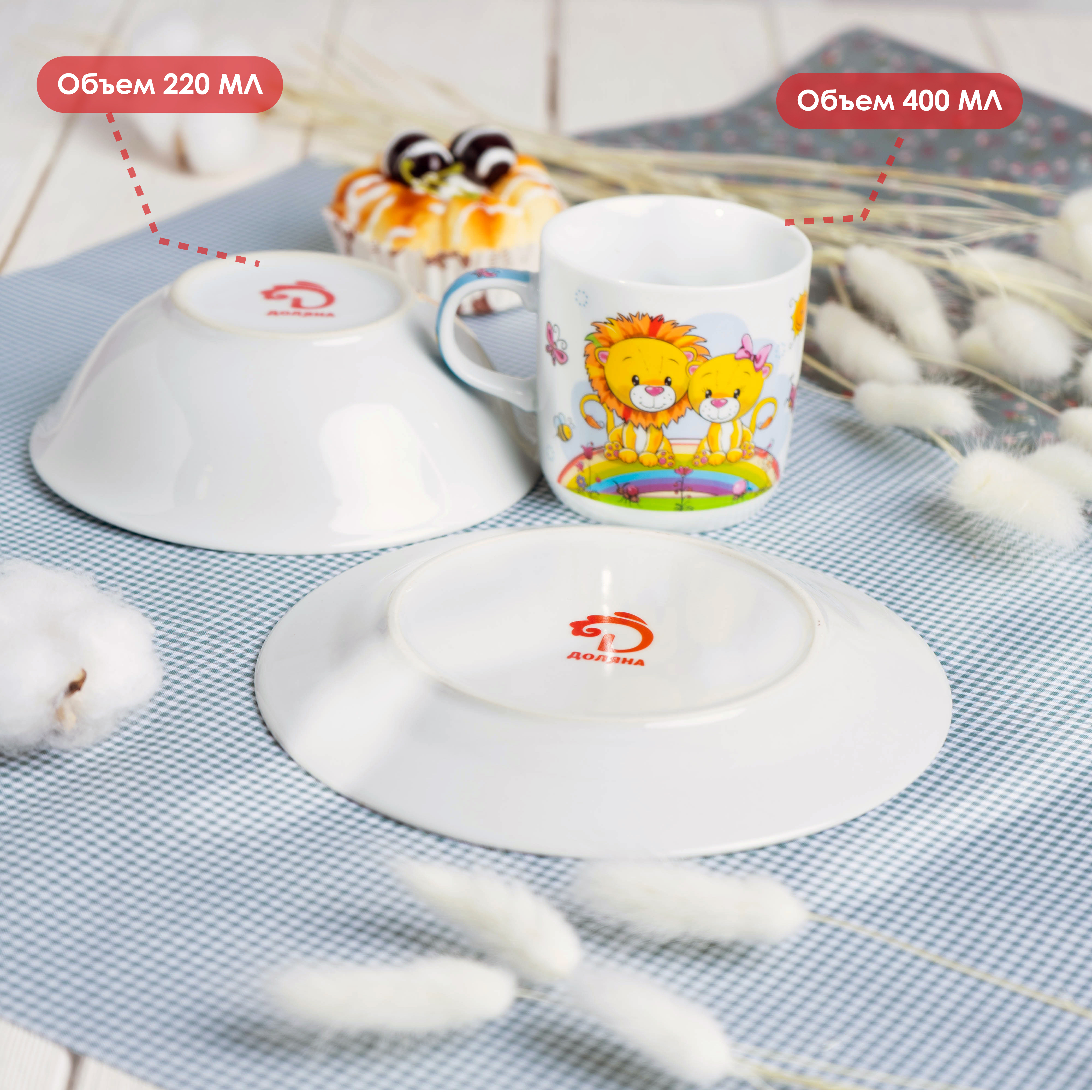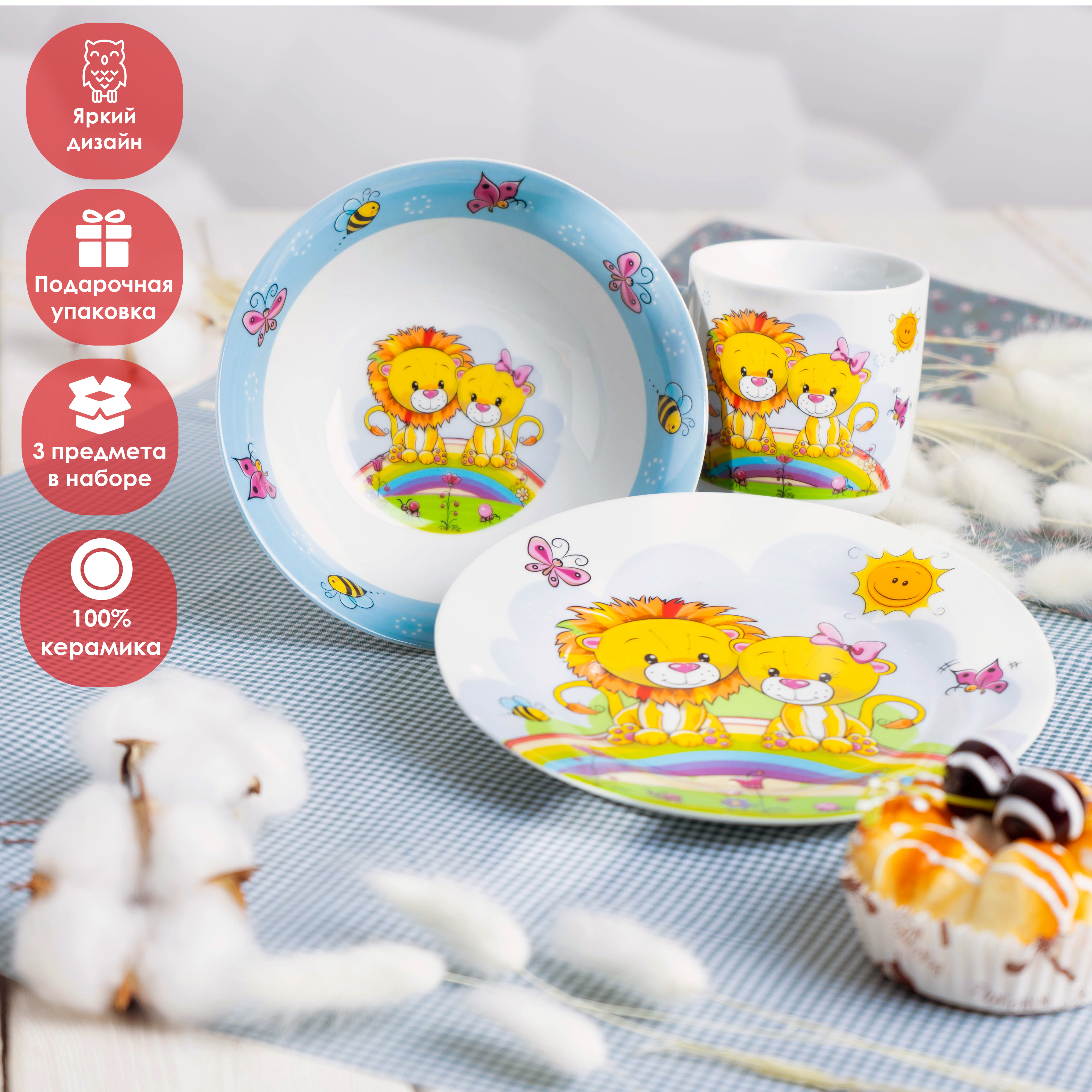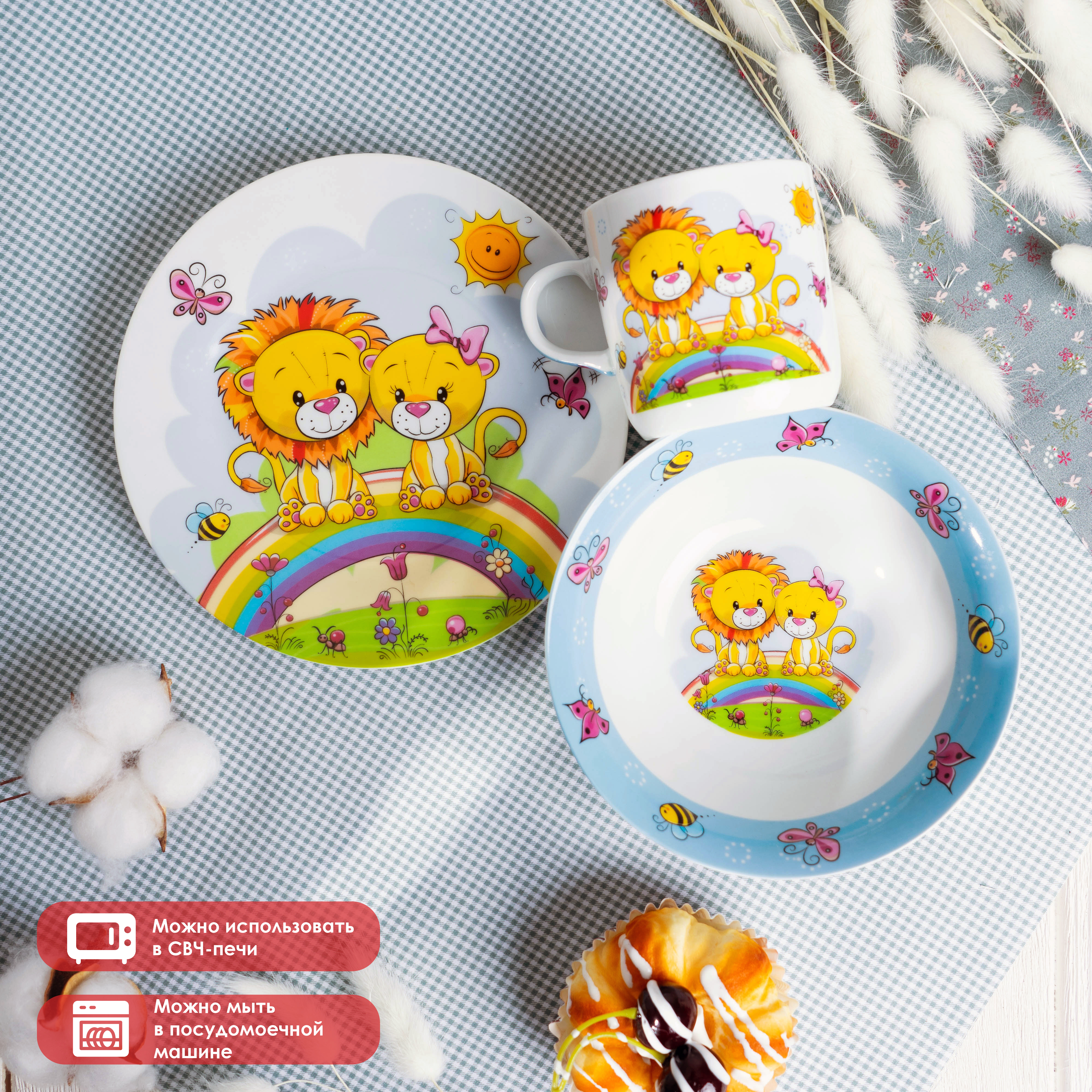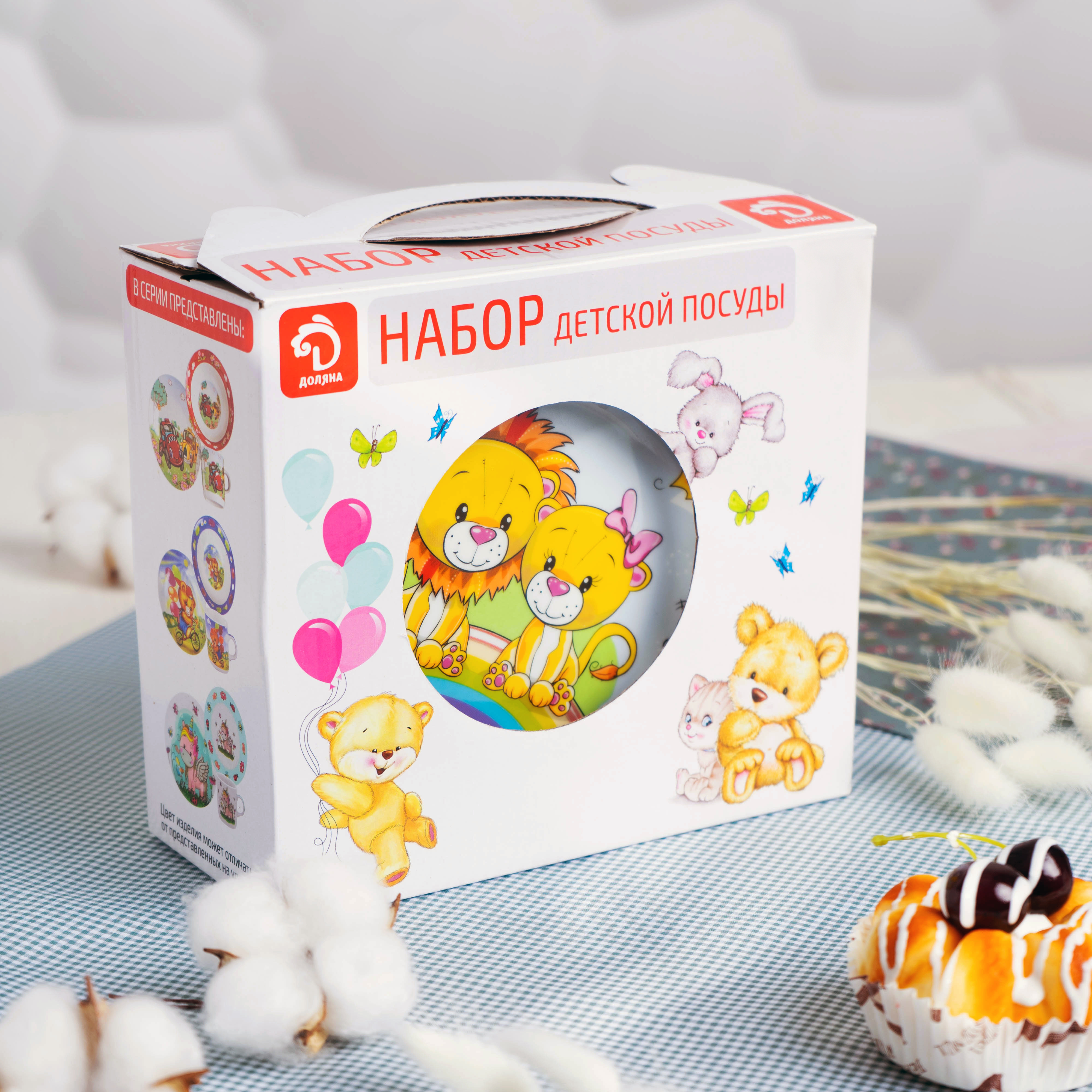 Набор детской посуды Доляна "Львята", 3 предмета: кружка 250 мл, миска 400 мл, тарелка 18 см