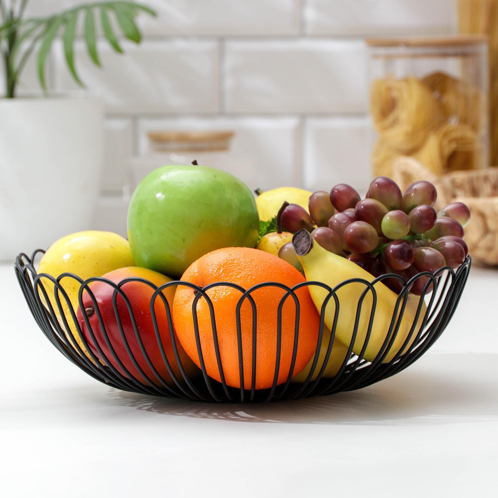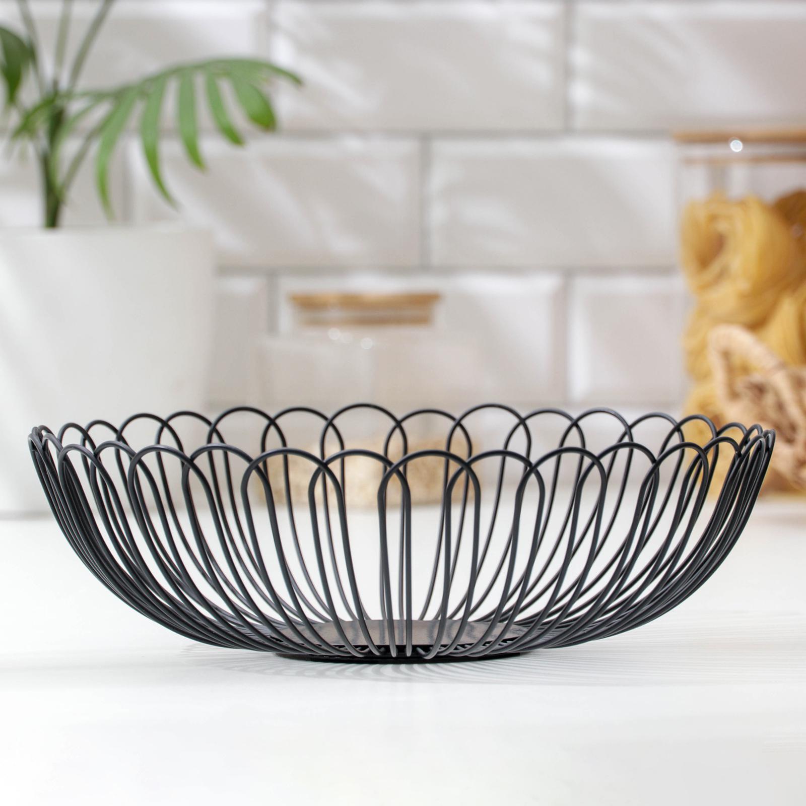 Ваза для фруктов металлическая Доляна "Хризантема", фруктовница, цвет чёрный