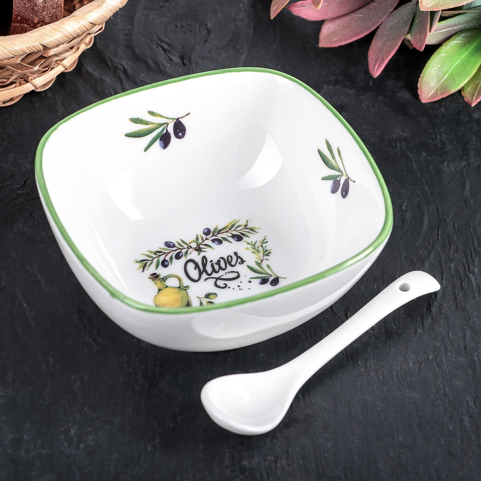 Блюдо сервировочное из доломита Доляна "Лист", цвет зеленый, размер 21,8х9х2,8 см