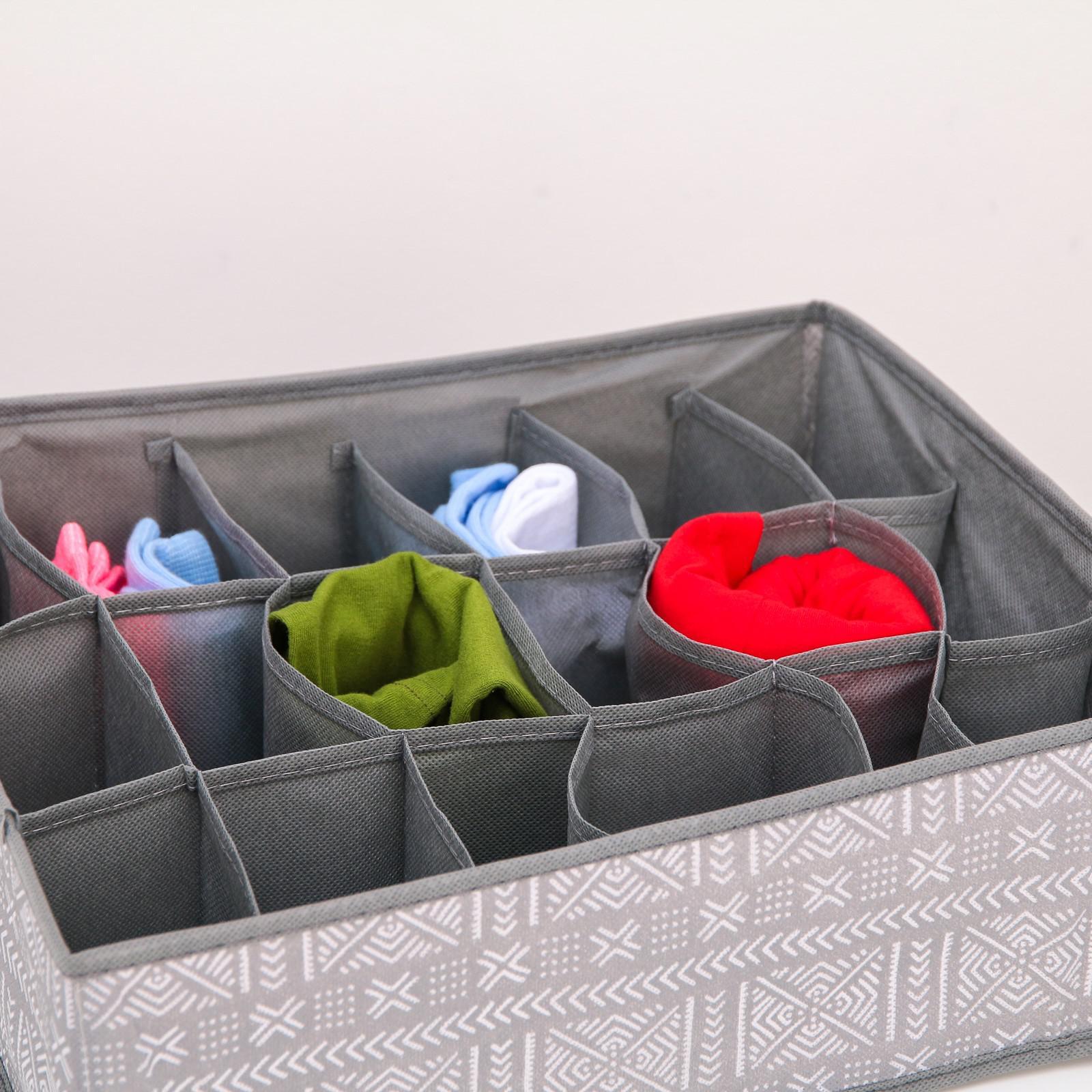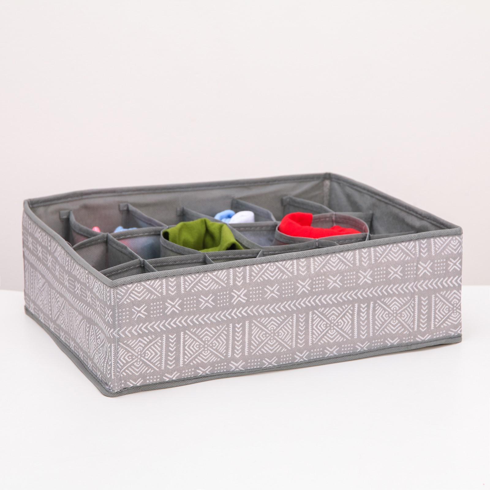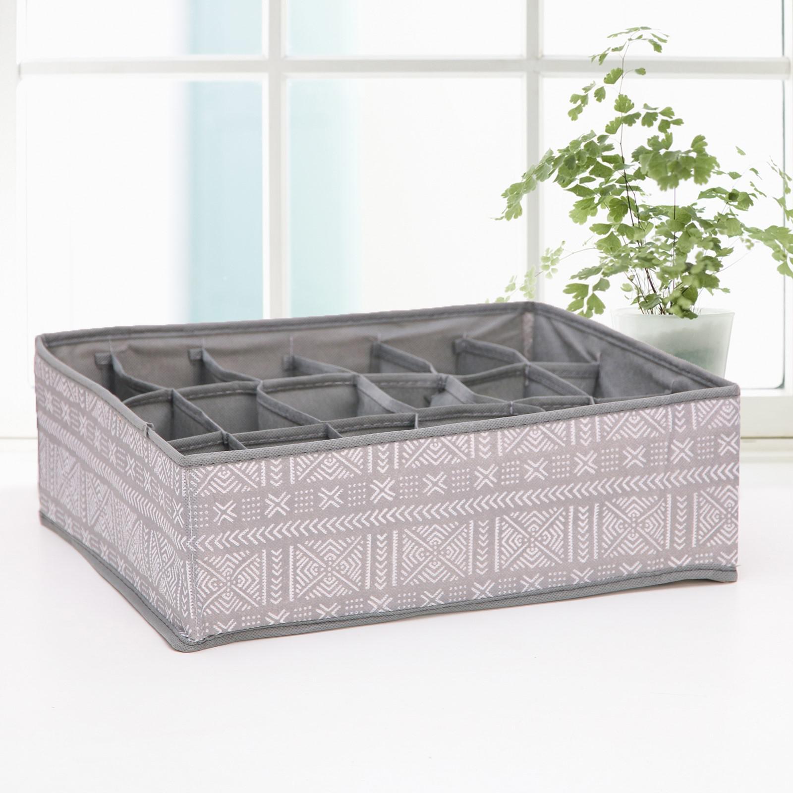 Органайзер для белья Доляна "Этника", 18 ячеек, 35*30*12 см, цвет серый