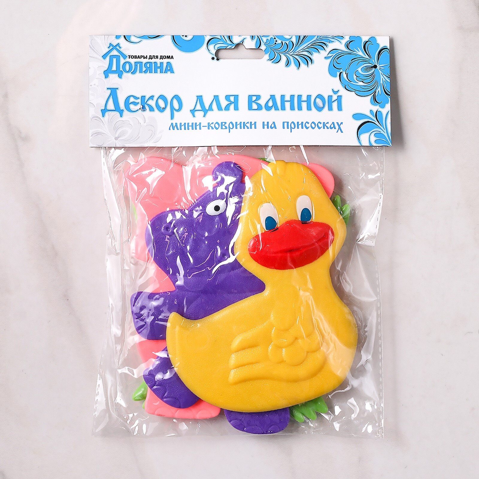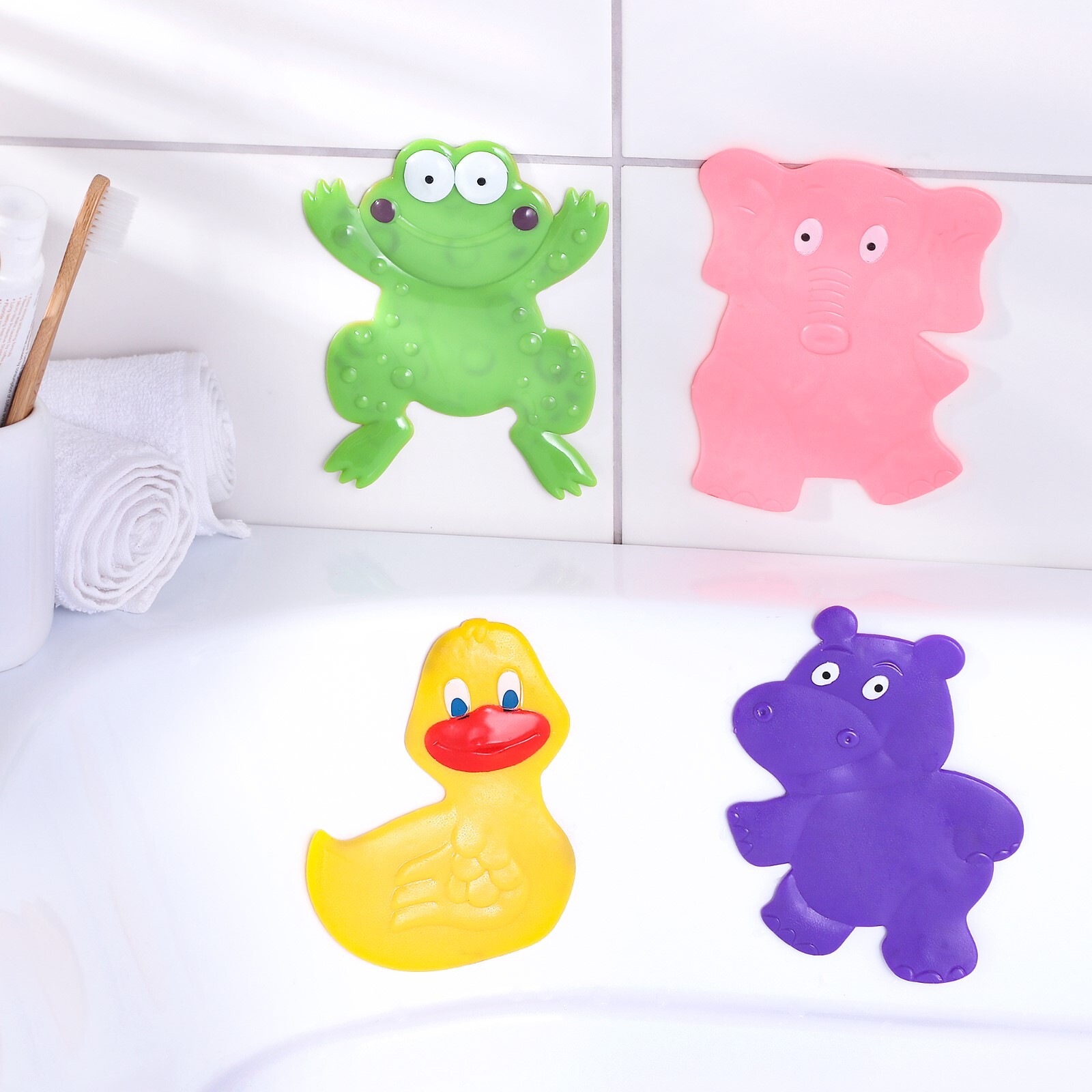 Набор мини-ковриков для ванны Доляна "Зоопарк", 4 шт, 11х14 см