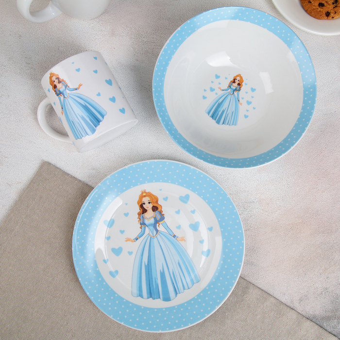 Набор детской посуды Доляна "Совушки", 3 предмета: кружка 230 мл, миска 400 мл, тарелка 18 см