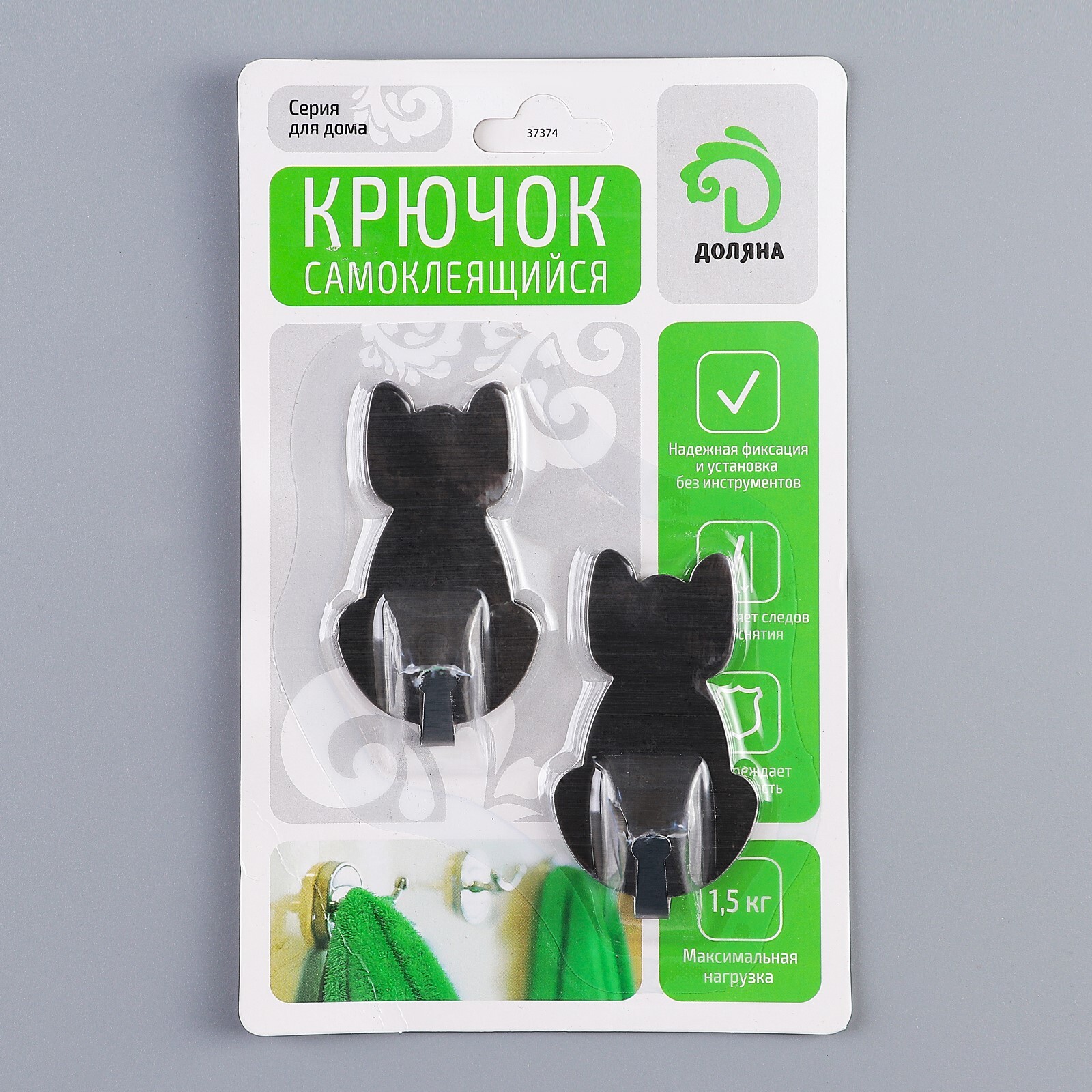 Набор крючков на липучке Доляна "Кошка", 2 шт, металлические