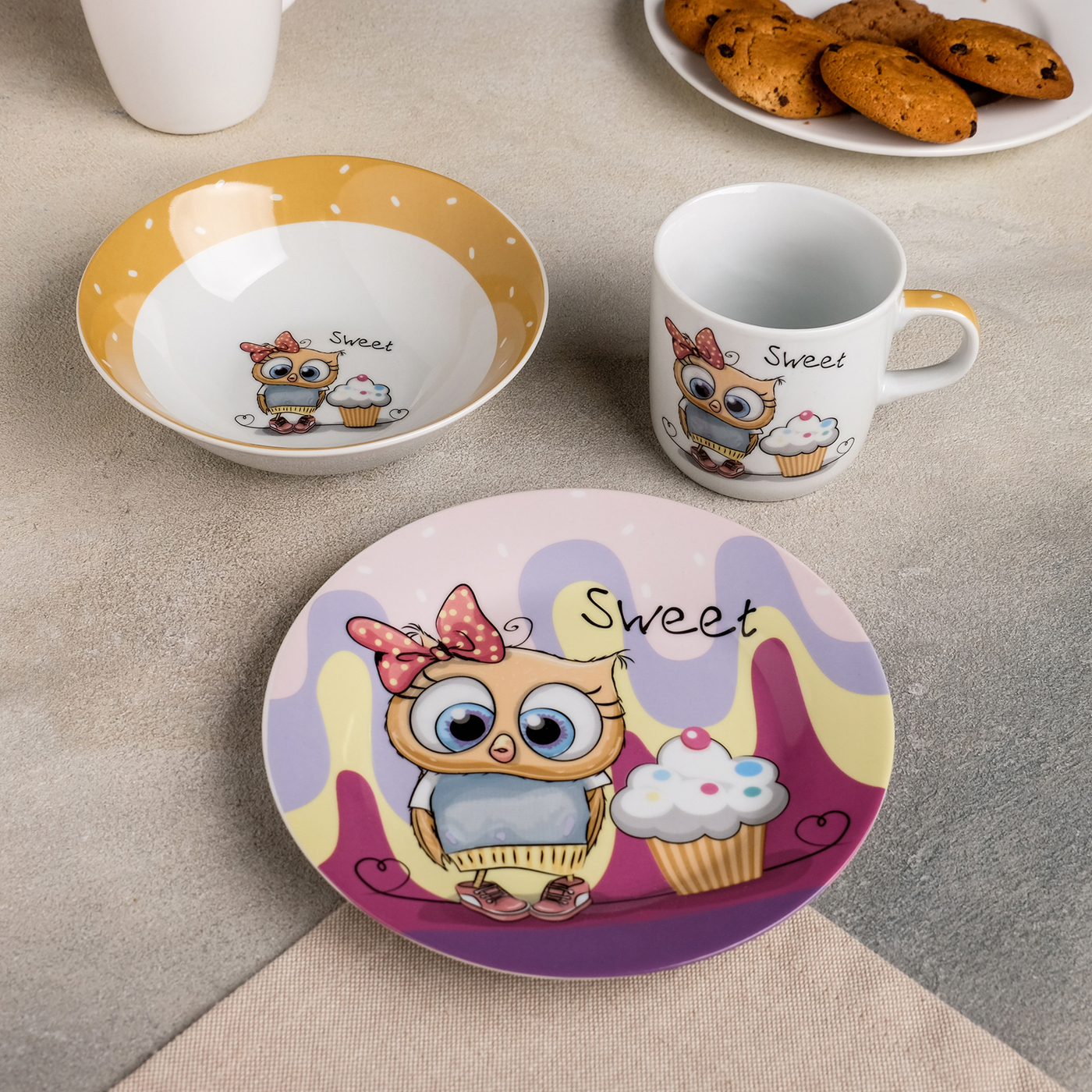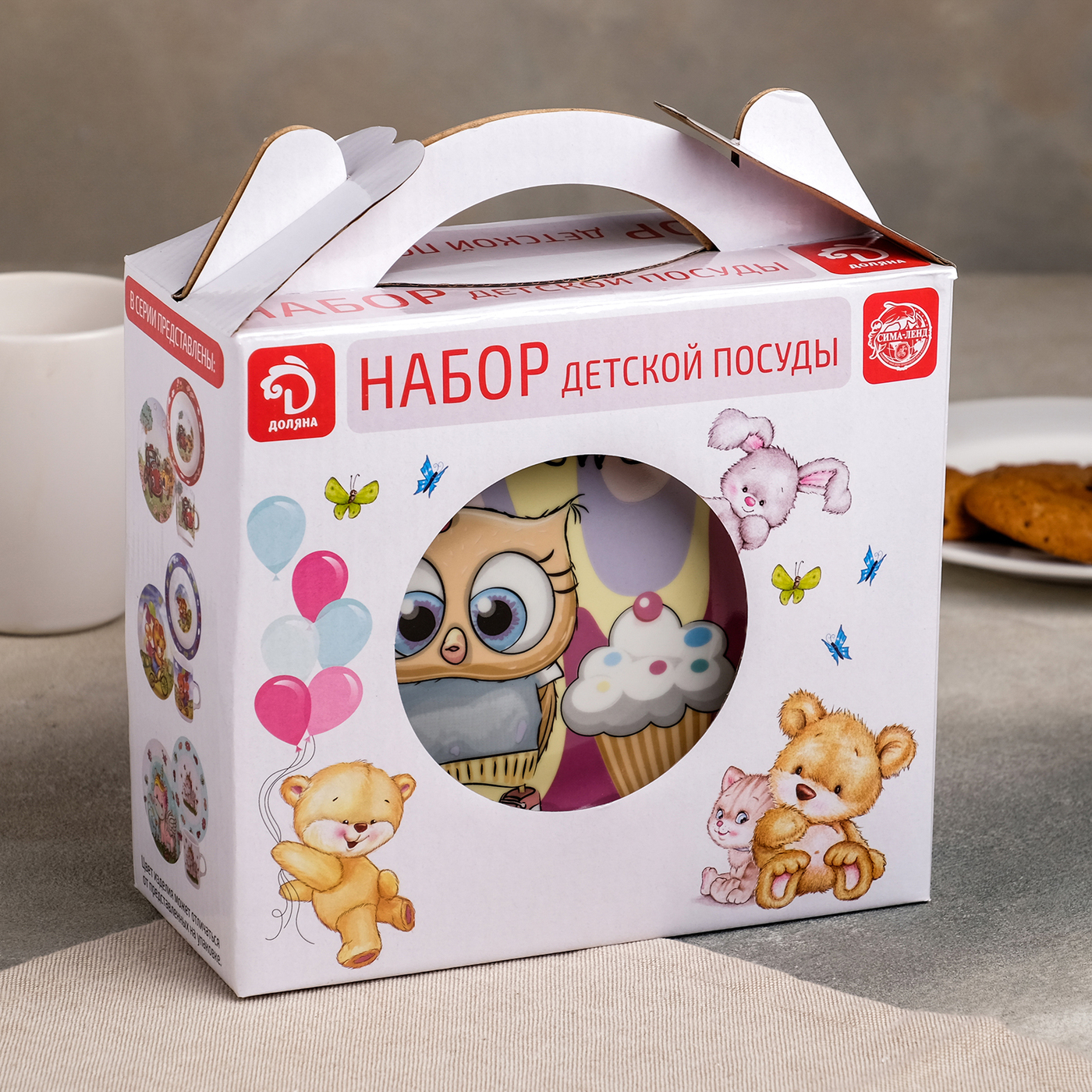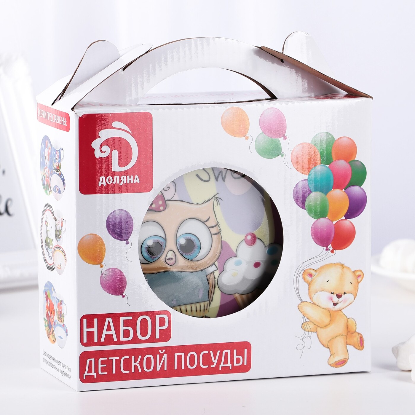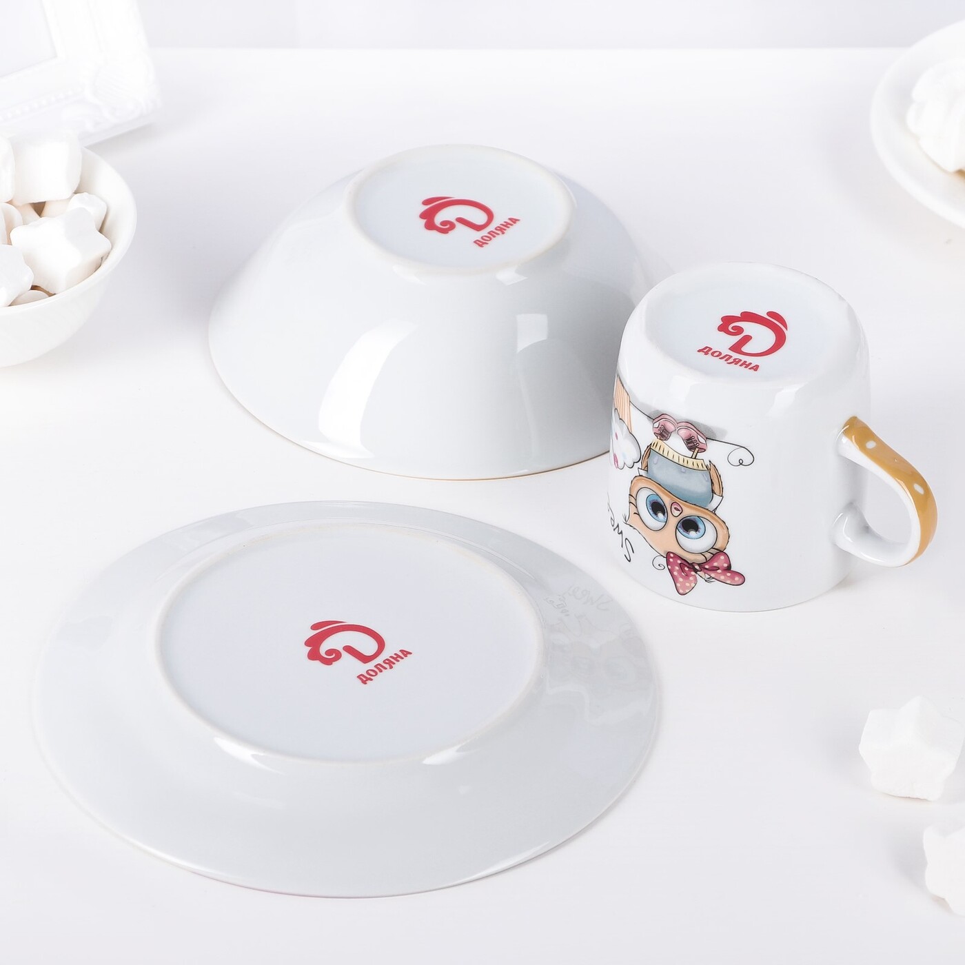Набор детской посуды Доляна "Совёнок", 3 предмета: кружка 250 мл, миска 400 мл, тарелка 18 см