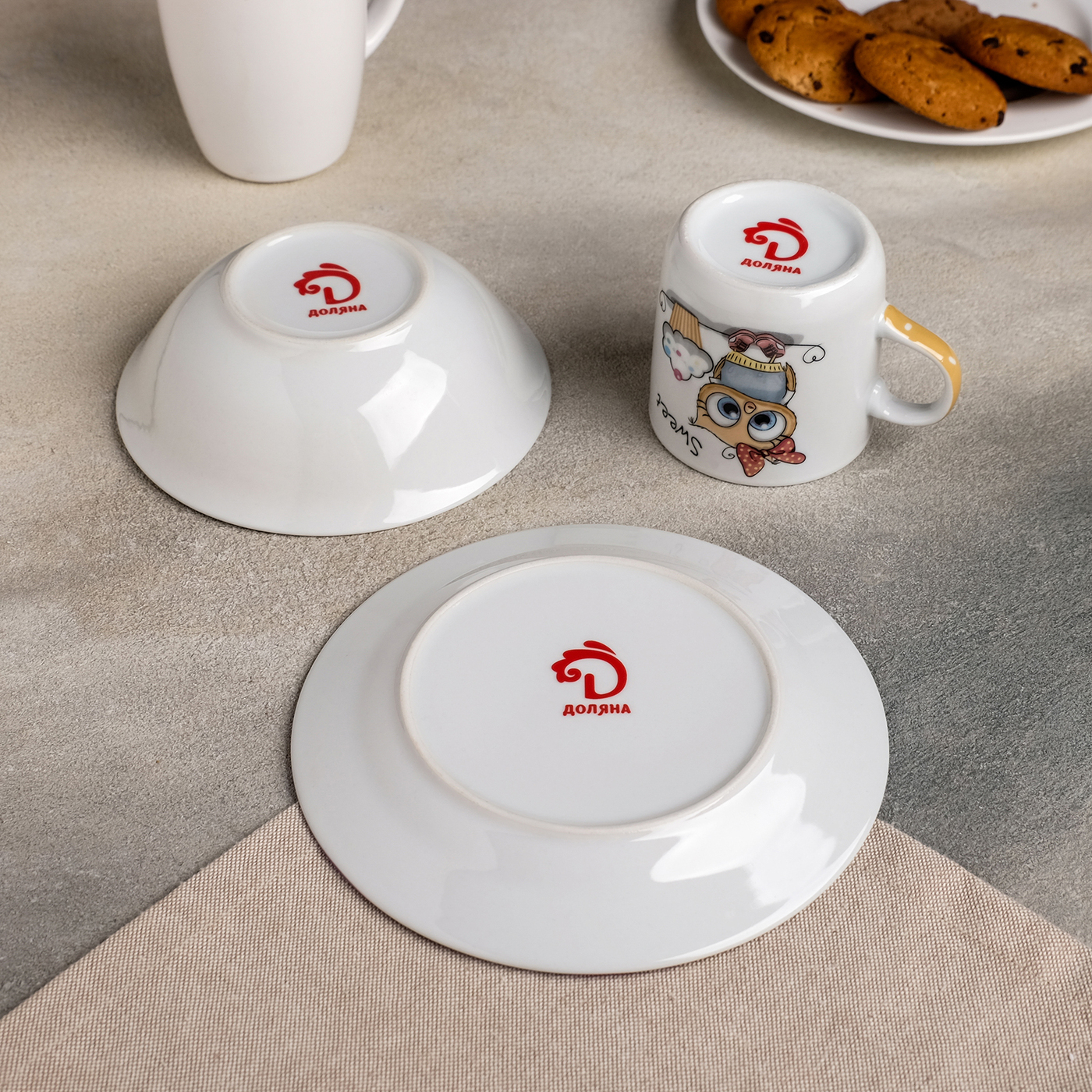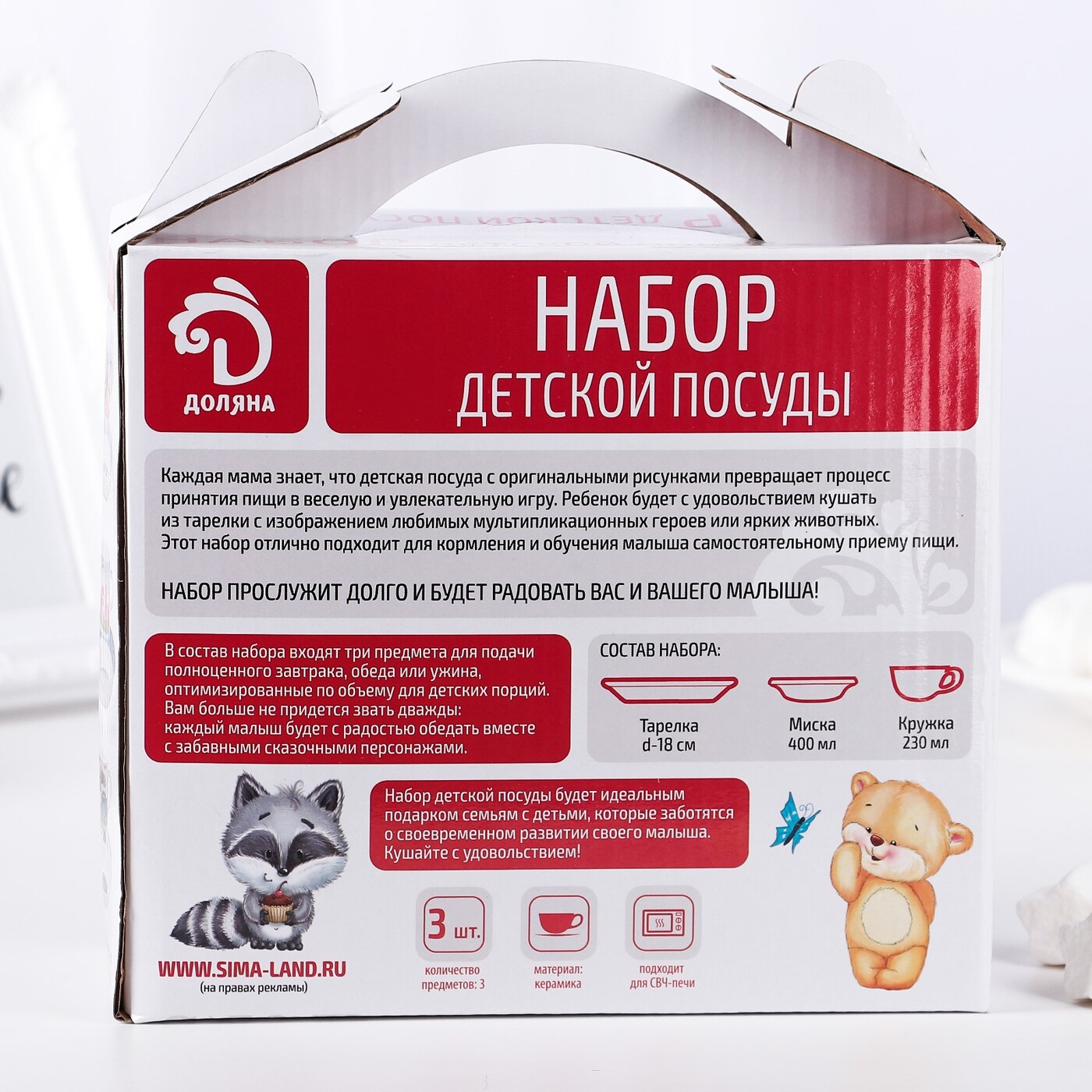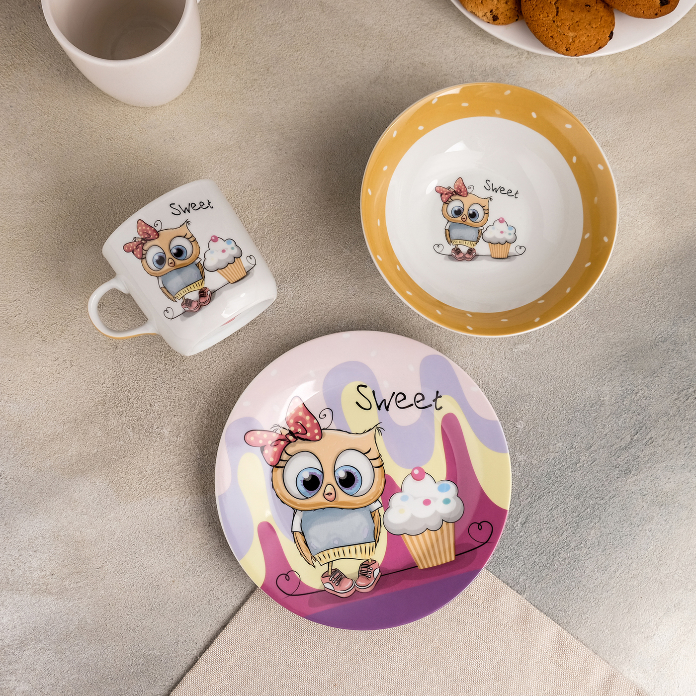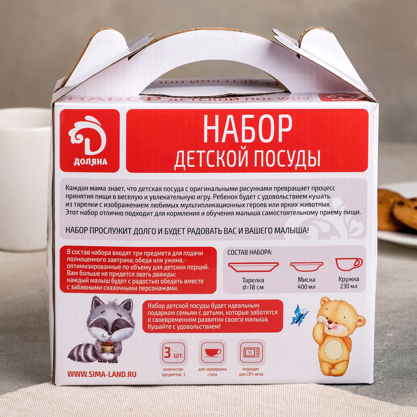 Набор детской посуды Доляна "Совёнок", 3 предмета: кружка 250 мл, миска 400 мл, тарелка 18 см