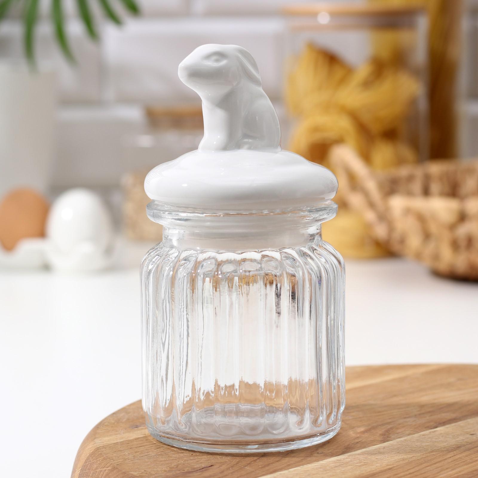 Банка для сыпучих продуктов Доляна "Зайка", универсальная емкость с крышкой, объем 230 мл