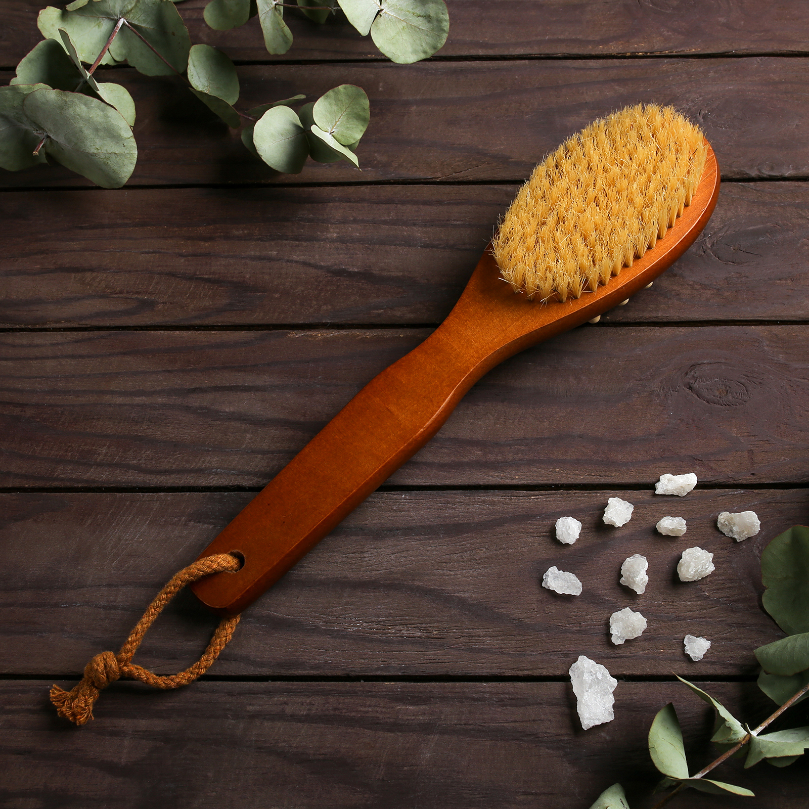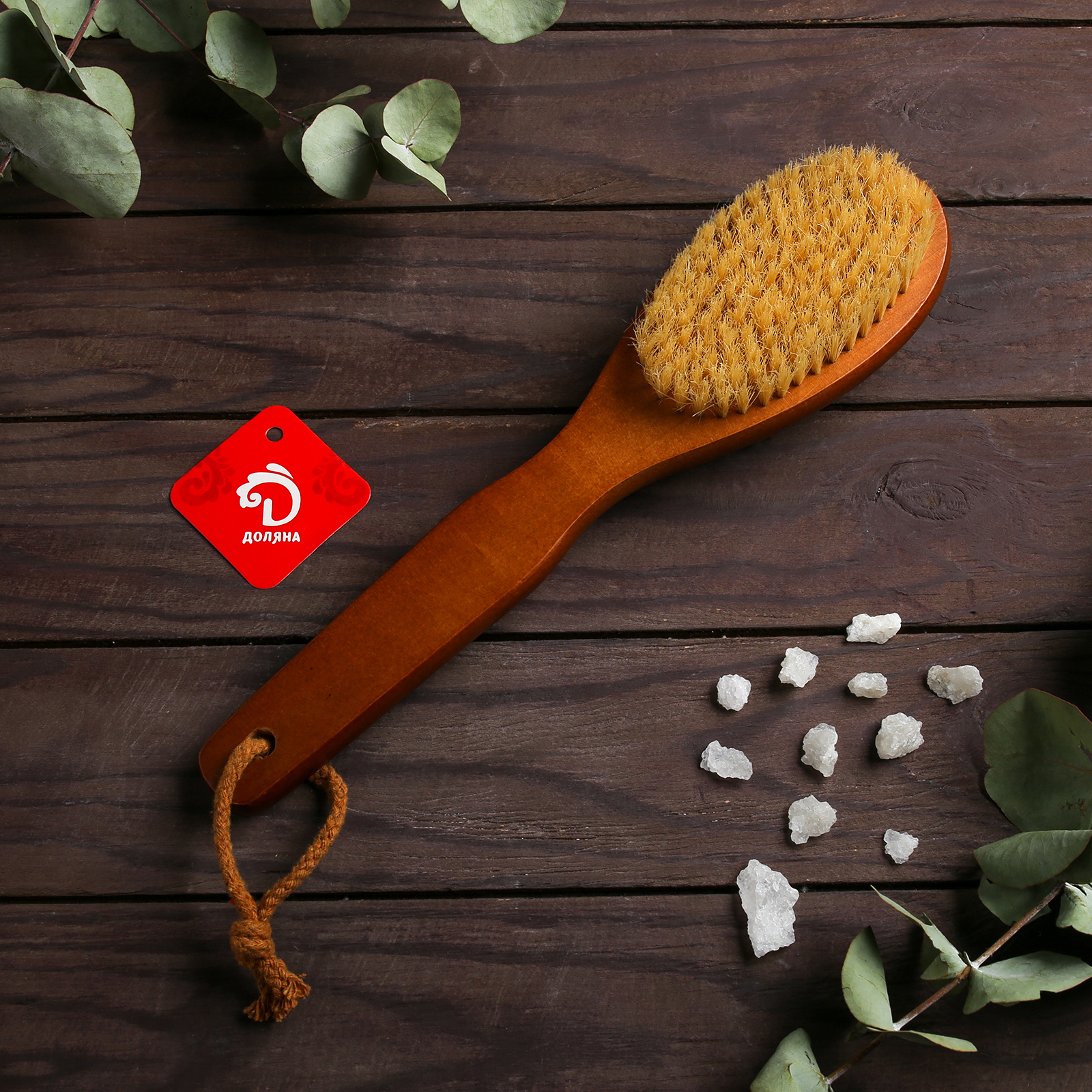 Щётка банная с ручкой и массажёром Доляна, натуральная щетина