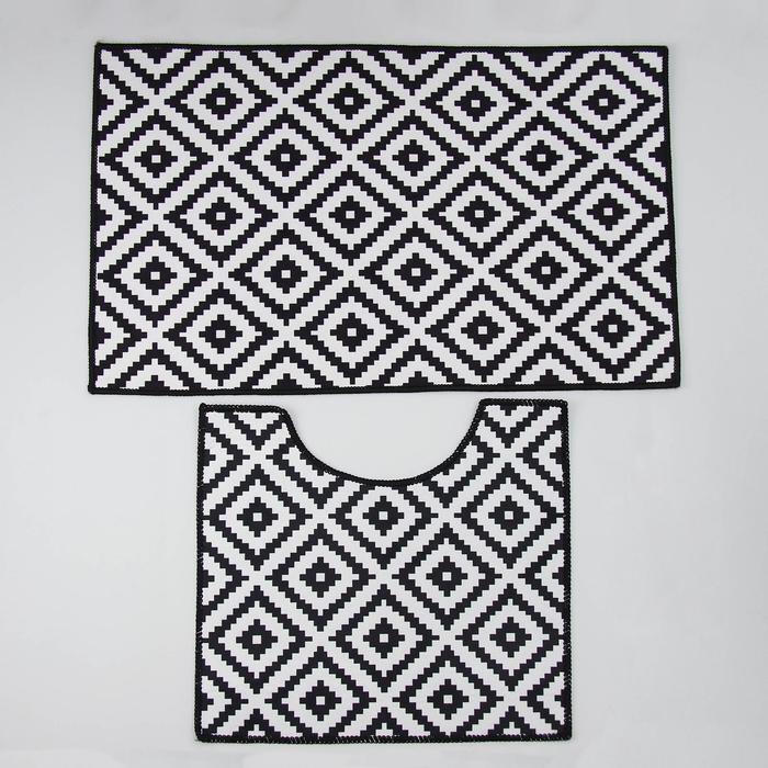 Набор ковриков для ванны и туалета Доляна "Грета", 2 шт: 50*80, 40*50 см, цвет чёрно-белый