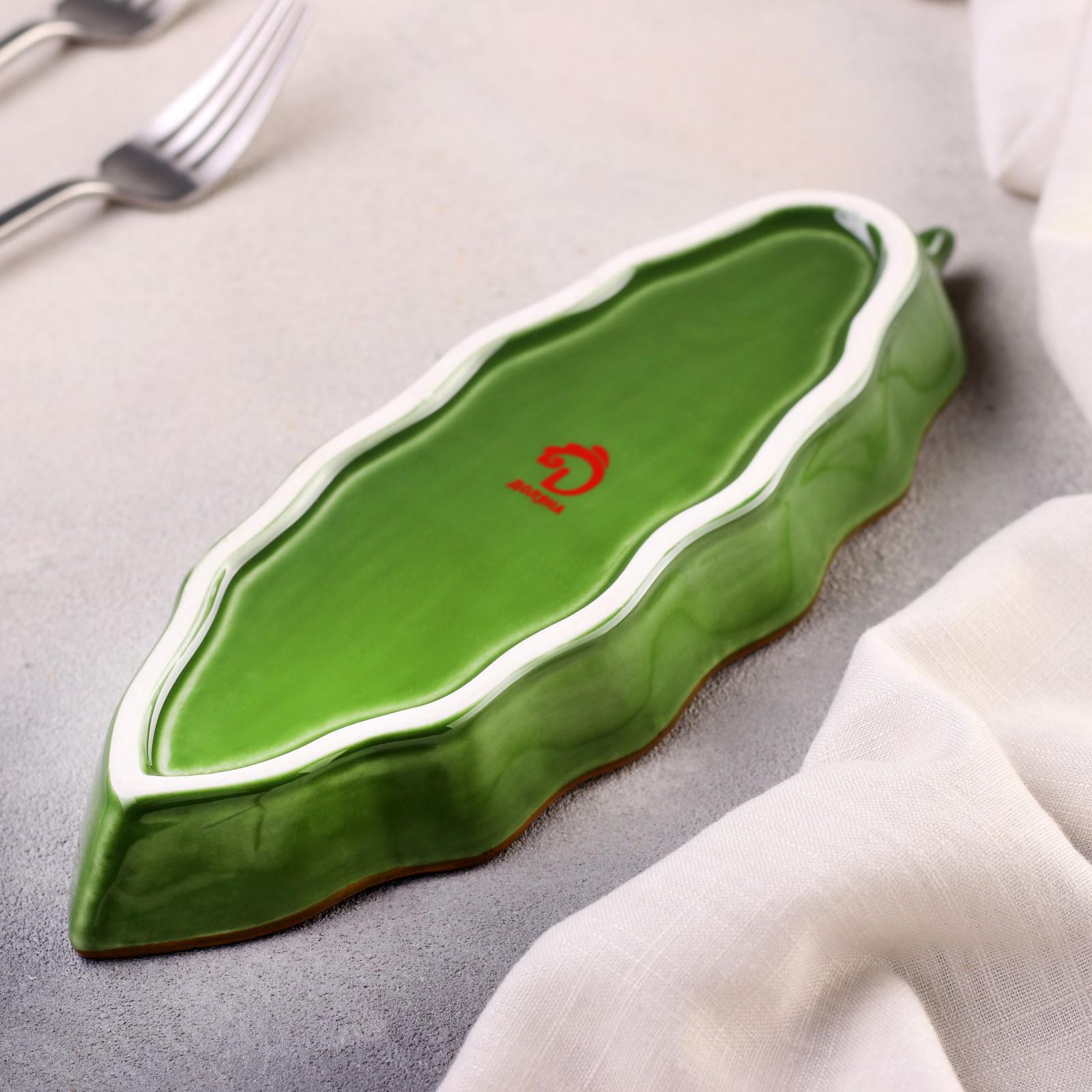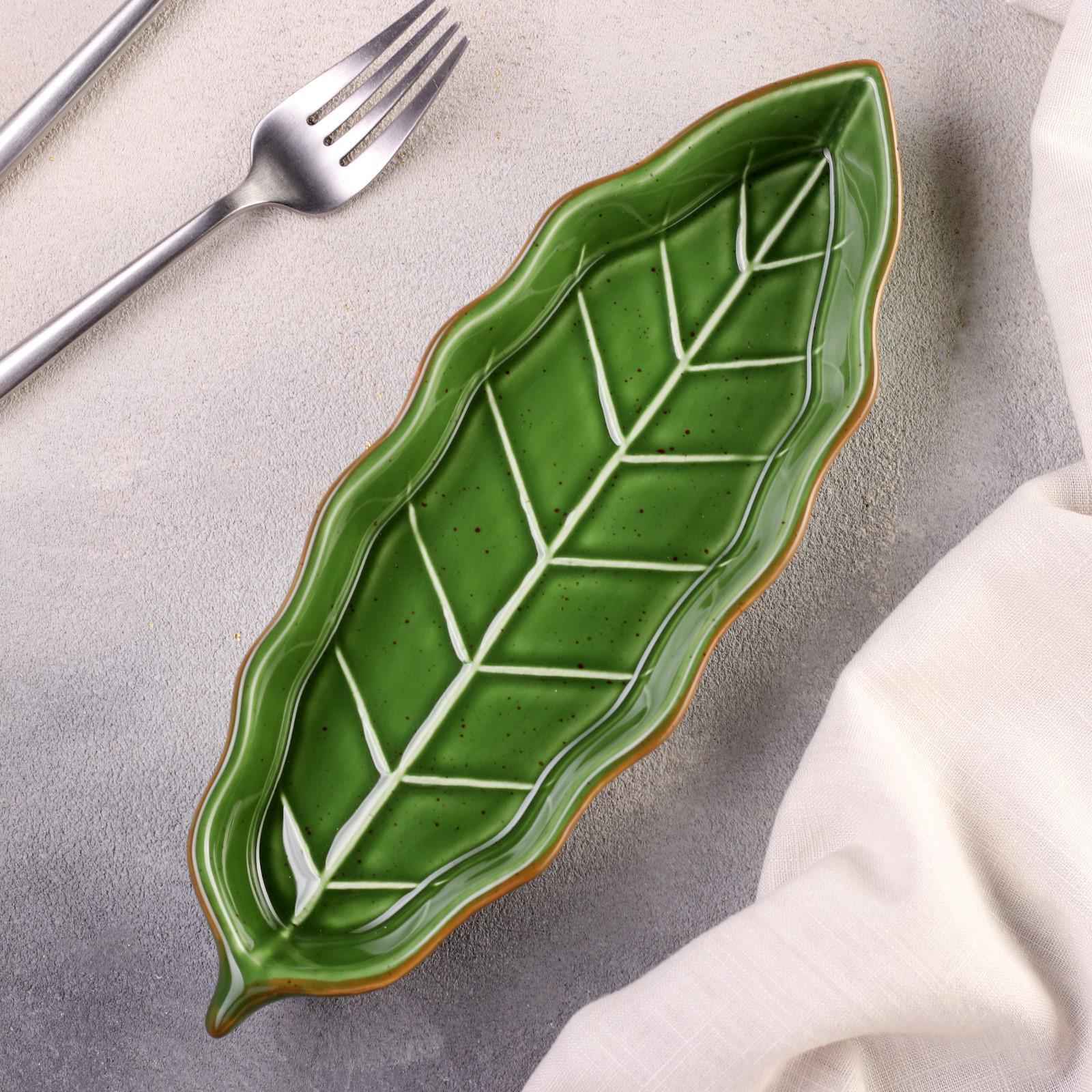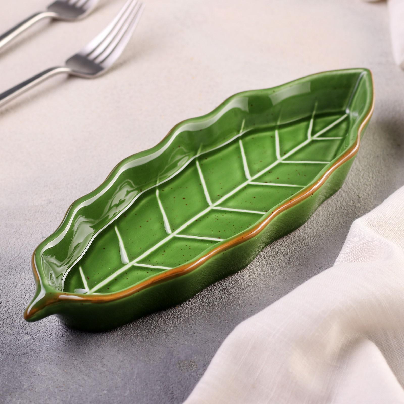 Блюдо сервировочное из доломита Доляна "Лист", цвет зеленый, размер 21,8х9х2,8 см