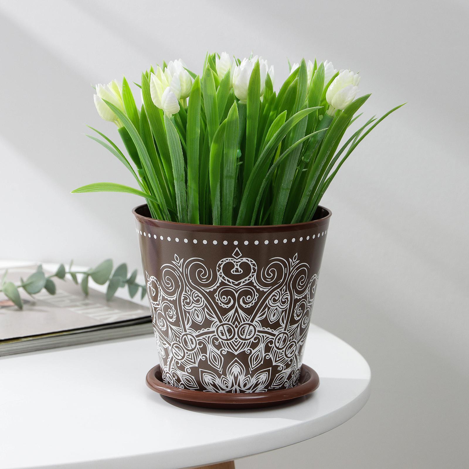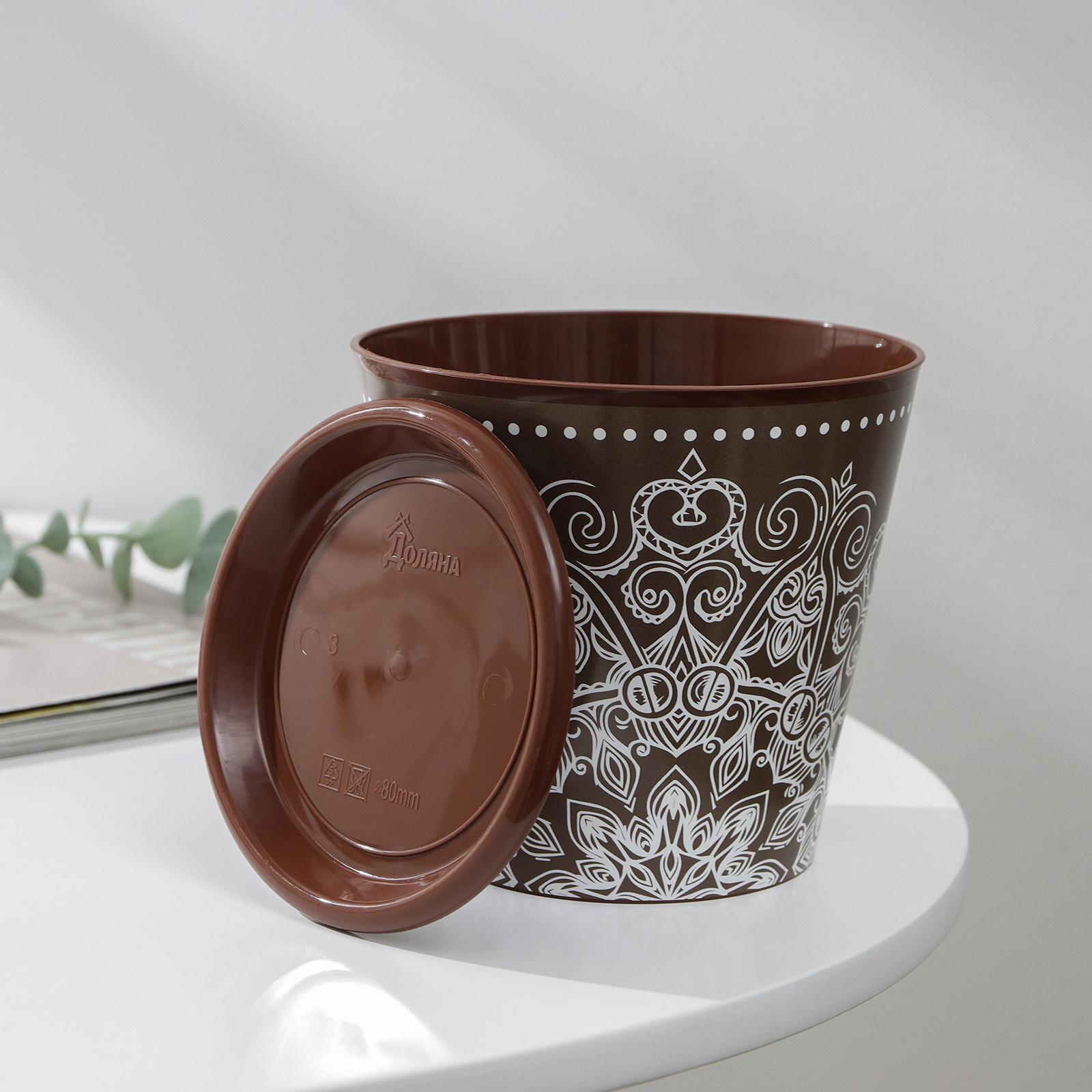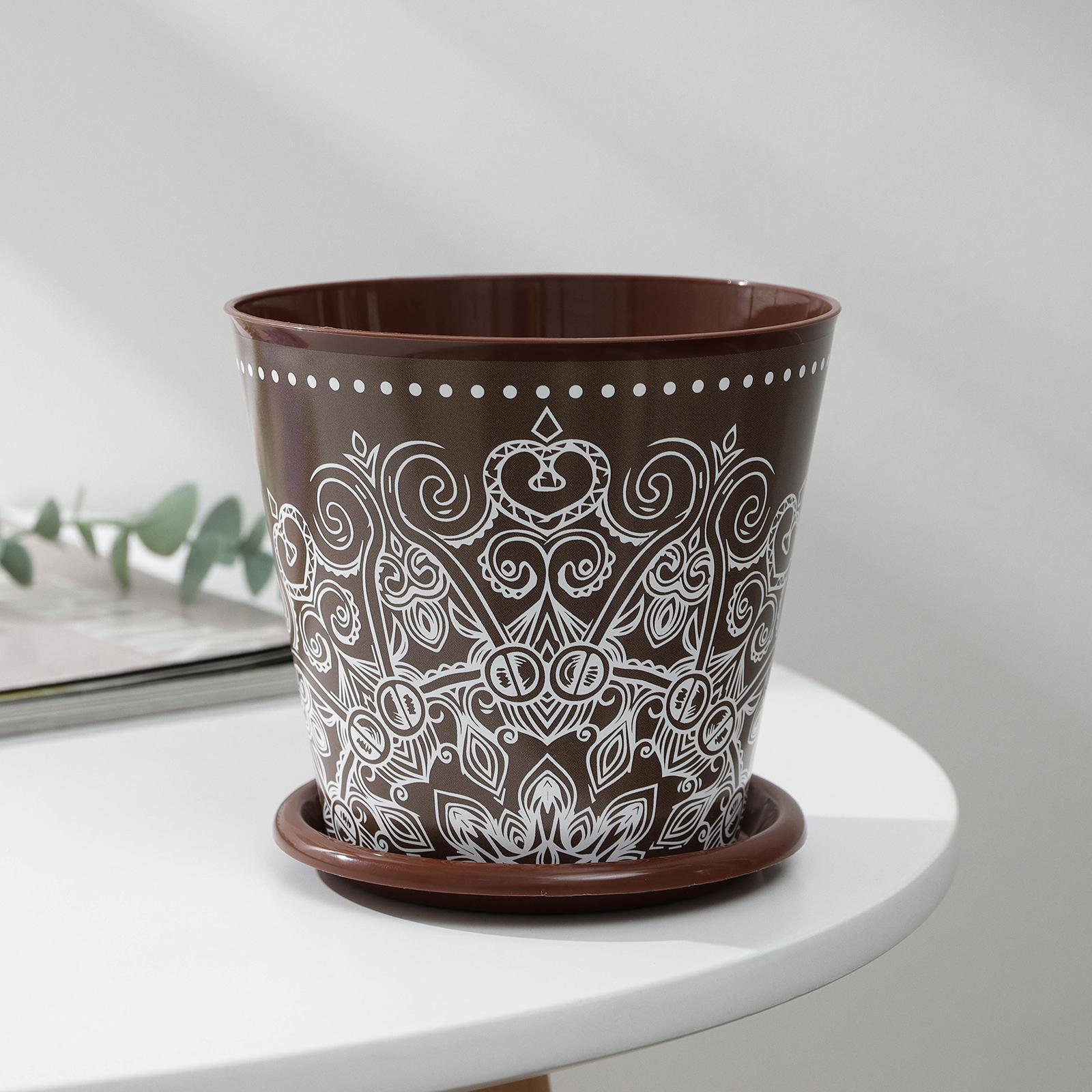 Горшок для цветов с поддоном Доляна "Кракле", кашпо для растений, цвет коричневый, 800 мл