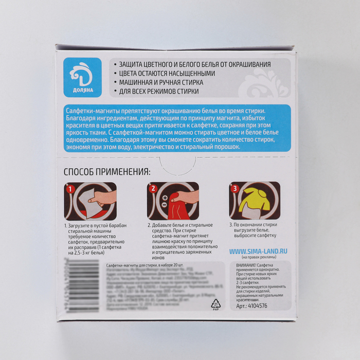Салфетки-магниты для стирки цветного белья, 20 шт