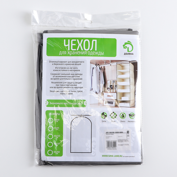 Чехол для одежды Доляна, 100 см х 60 см, 1 шт