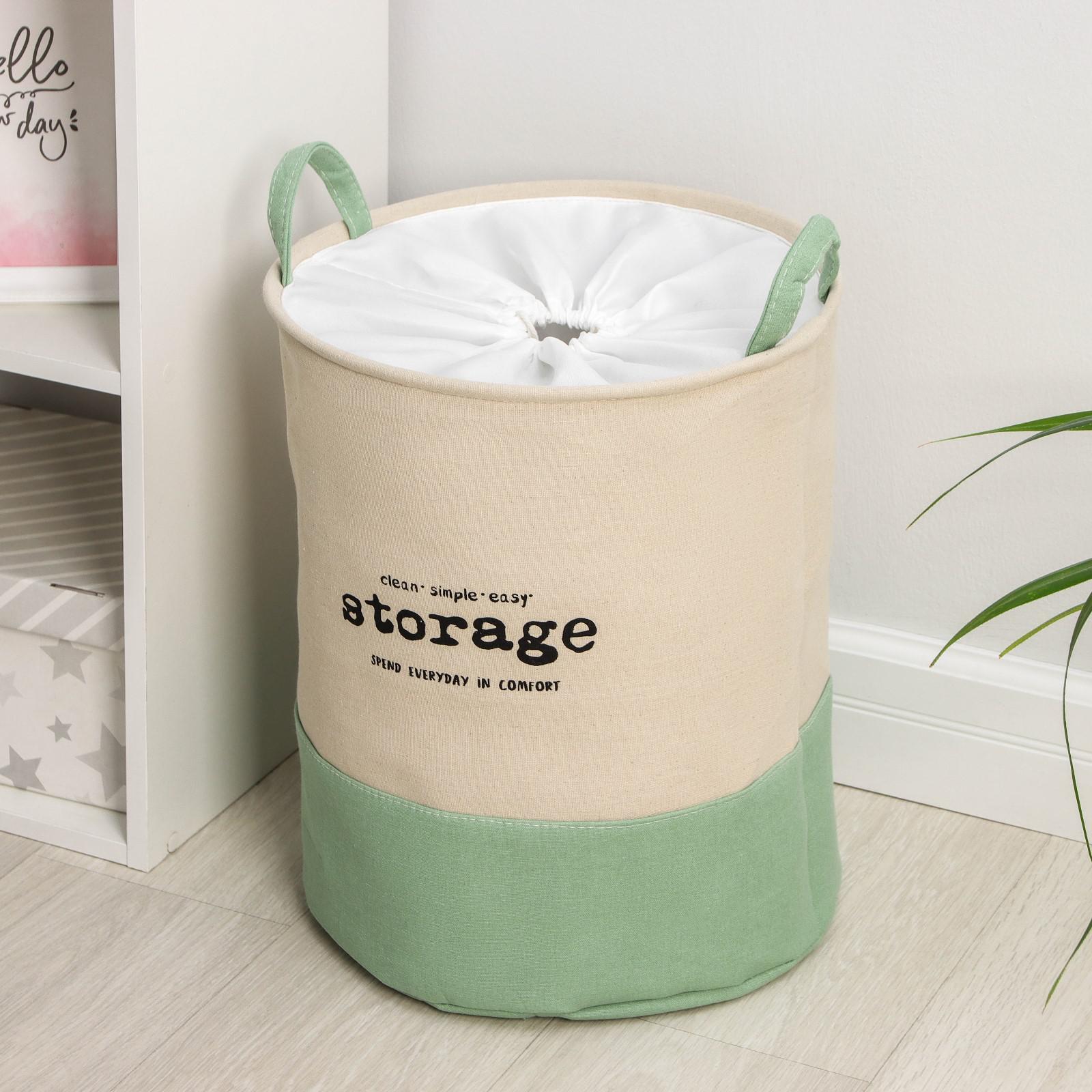 Корзина для белья Доляна "Лола", 40х35 см, с затяжкой, цвет зелёный