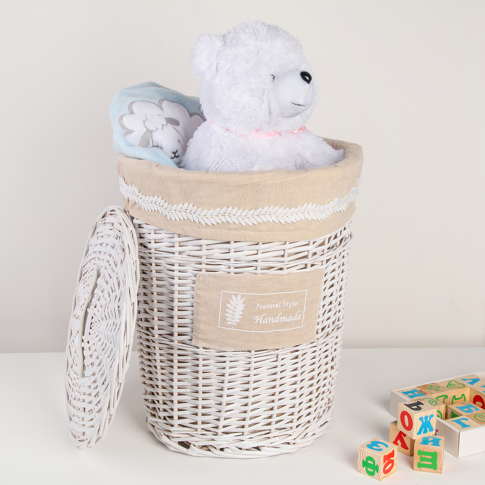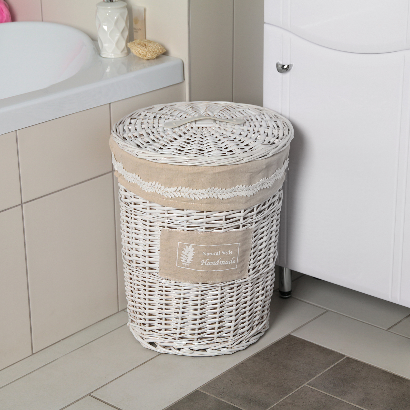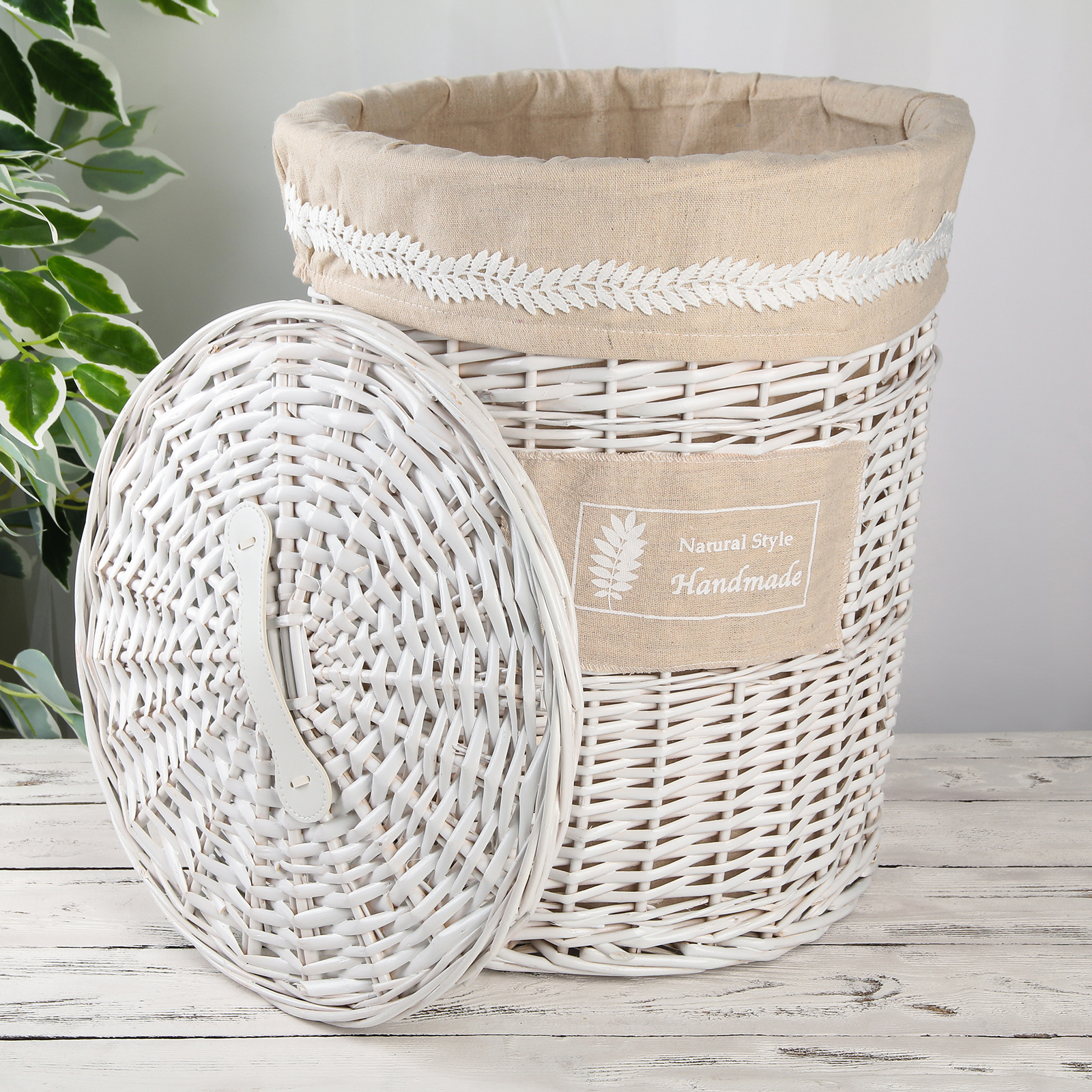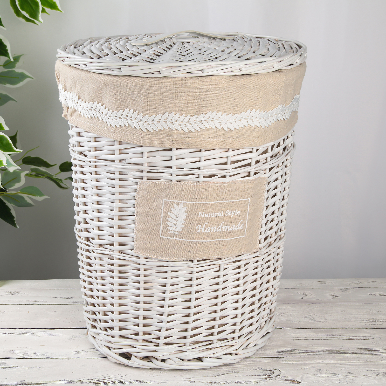 Корзина для белья плетёная Доляна Natural style, 38х38х47 см, цвет белый/бежевый