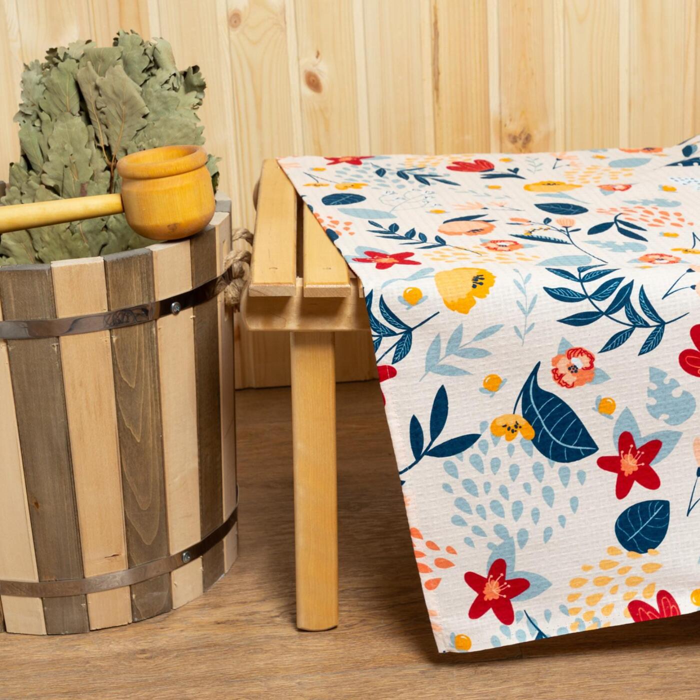Накидка для бани Доляна Цветочное поле Хлопок 145x180 см