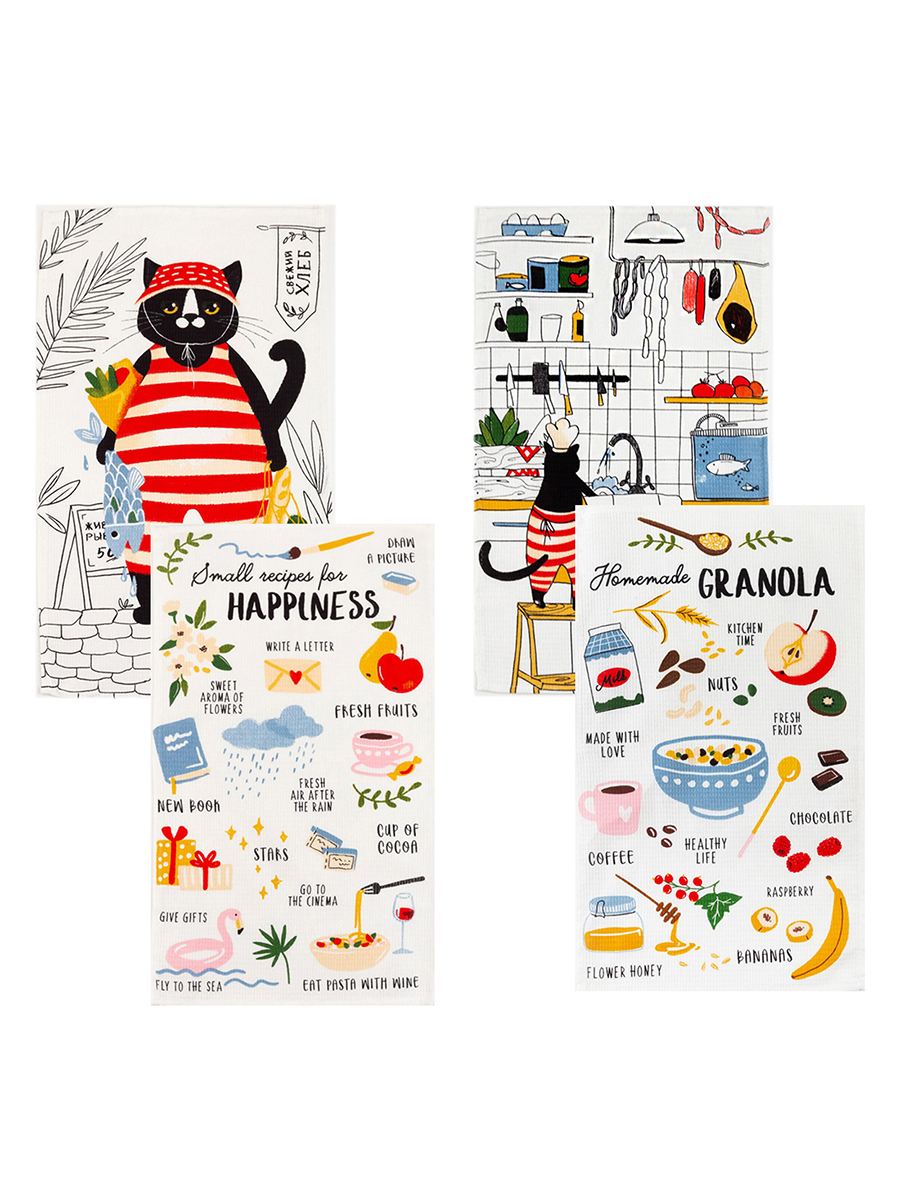 Набор полотенец для лица, рук или ног Доляна Happiness Хлопок 35x60 см, 4 шт.