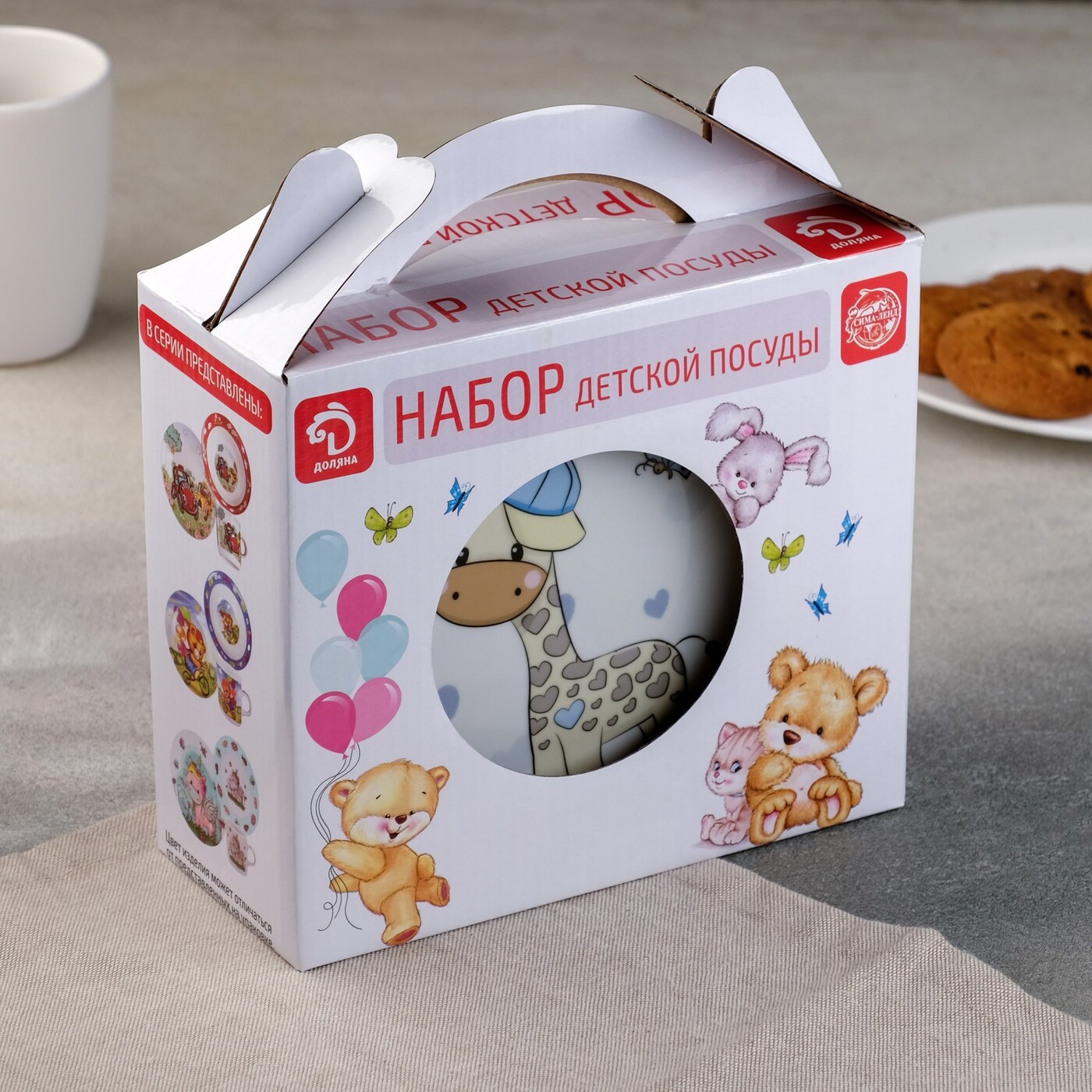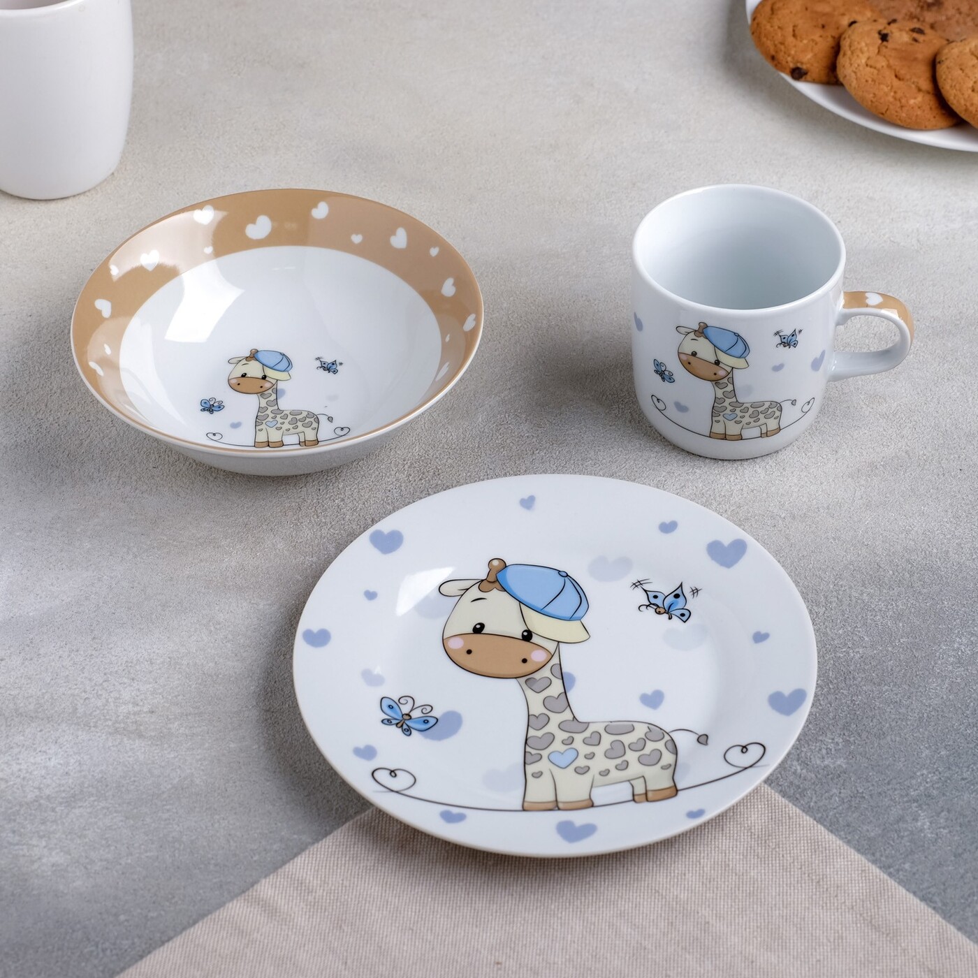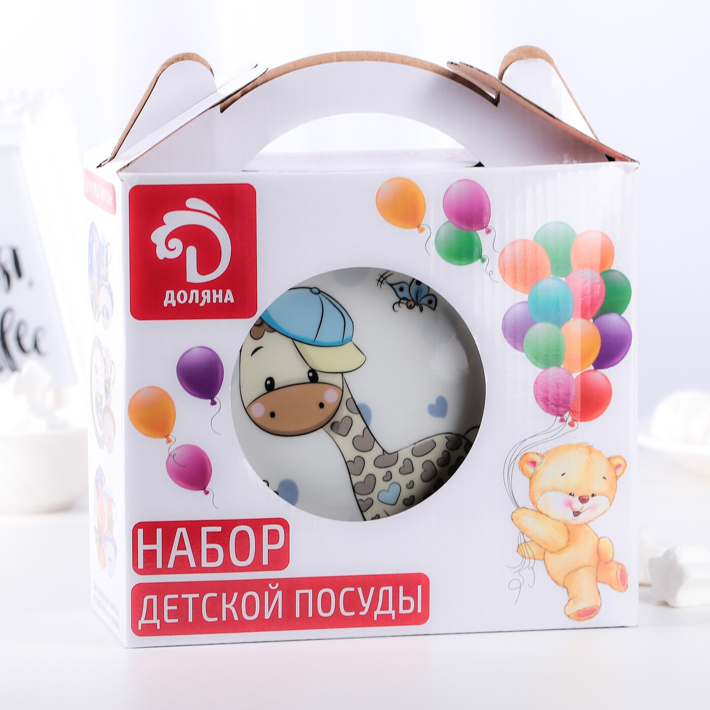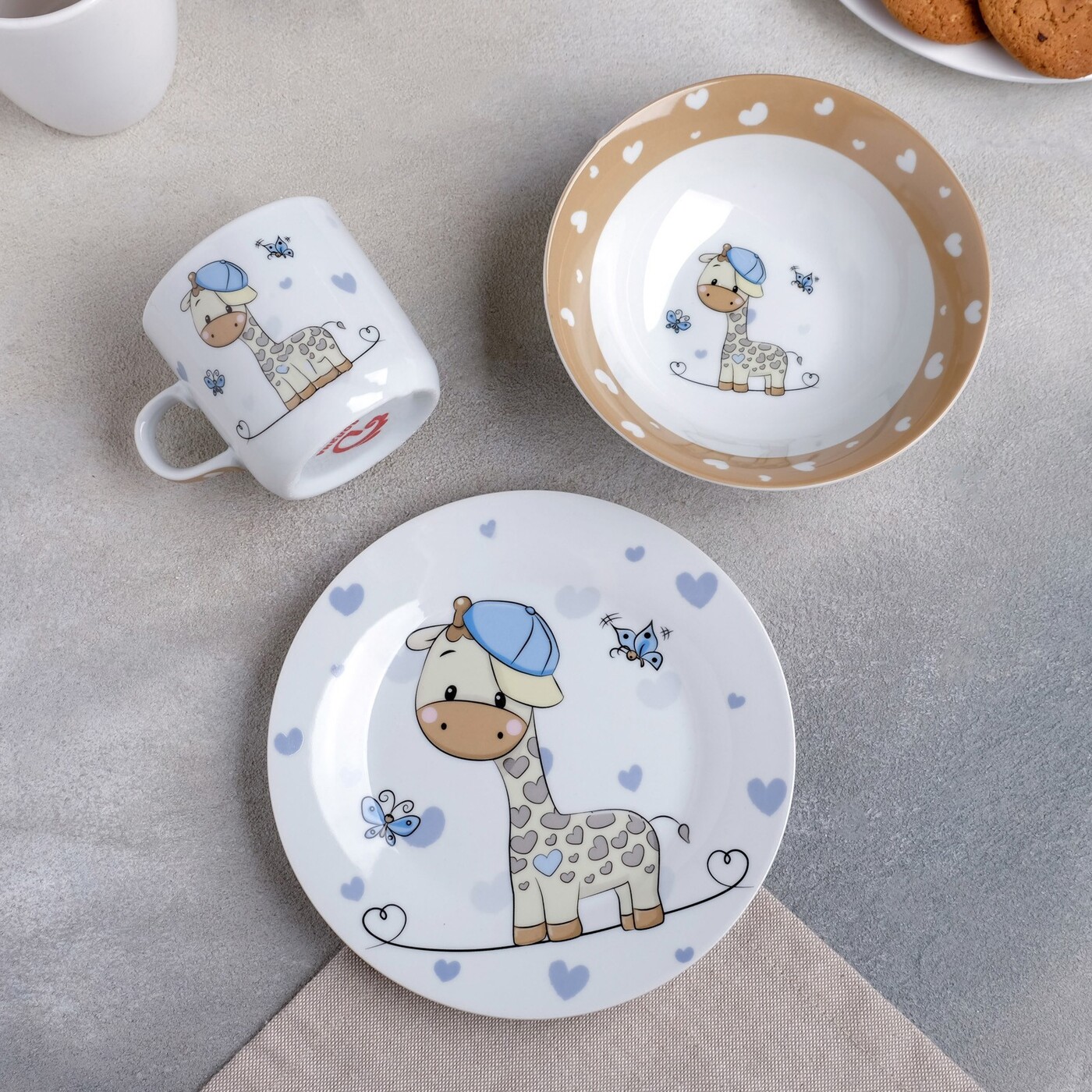 Набор детской посуды Доляна "Жирафик", 3 предмета: кружка 230 мл, миска 400 мл, тарелка 18 см