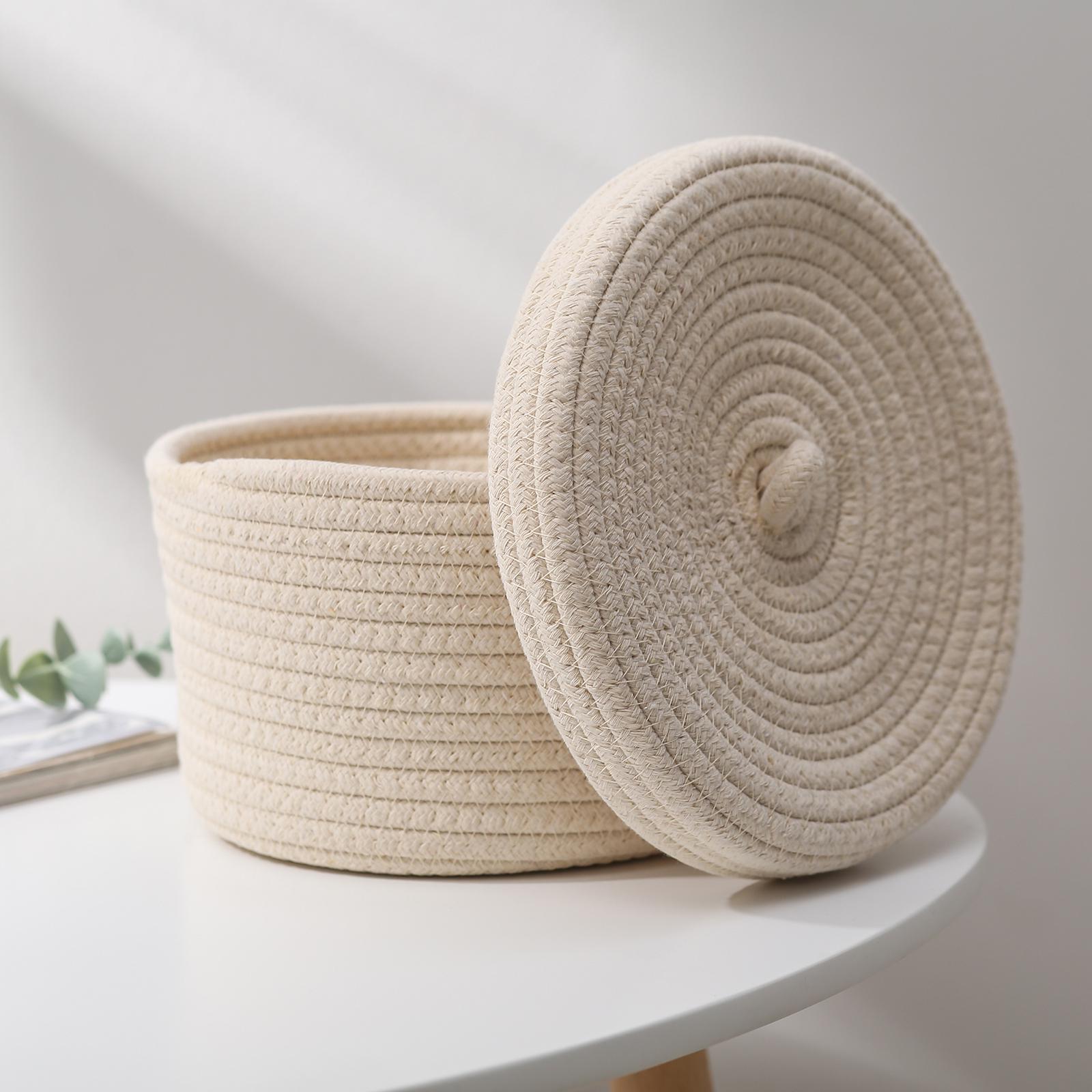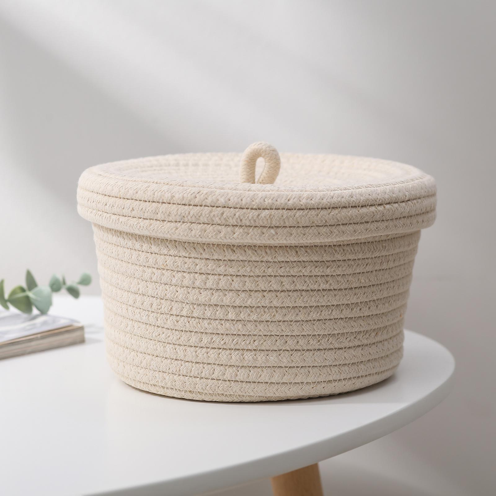 Корзина для хранения плетёная с крышкой Доляна "Бэлл", цвет молочный, размер 21х21х11 см