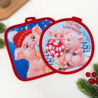 Кух. набор "Доброго Нового года" прихватки 17*17см-2шт,35% хл,65%п/э,ватин 250г/м2