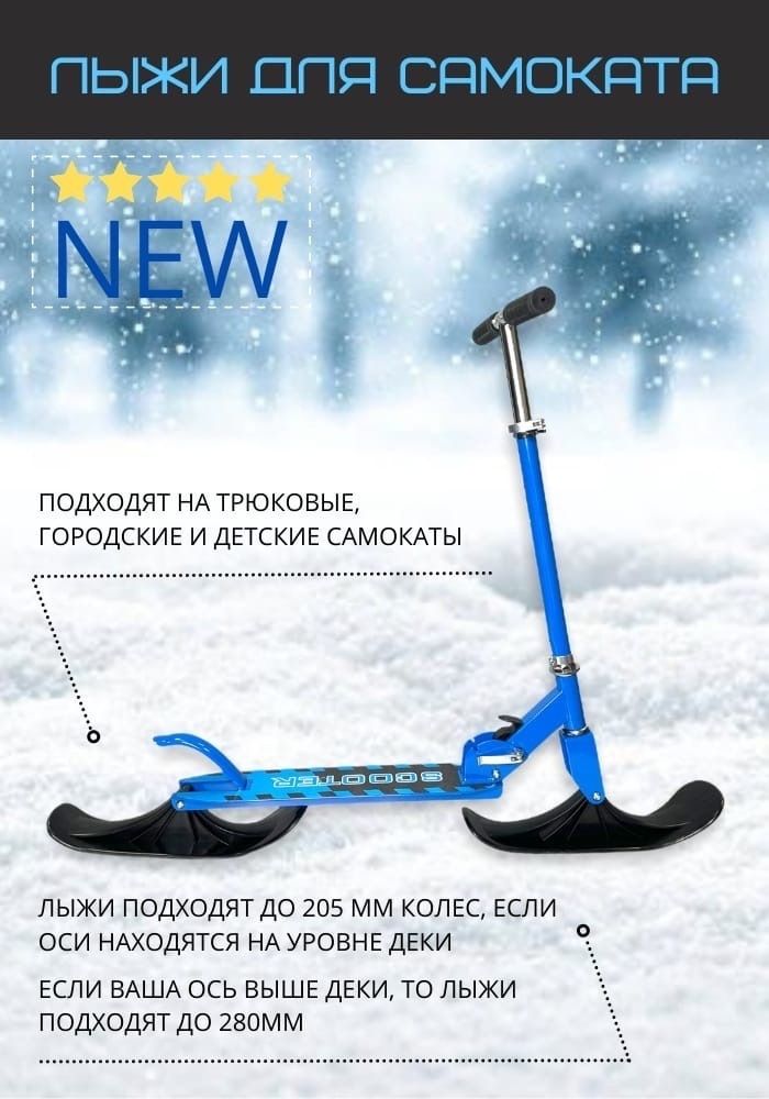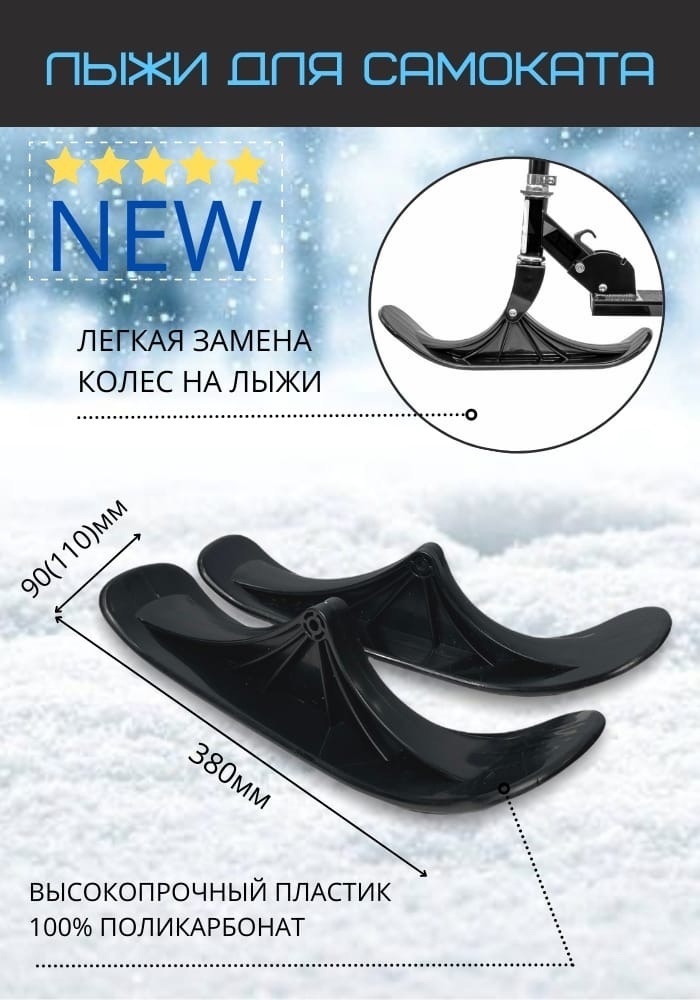 Лыжи для Самоката 2 штуки 100% Поликарбонат Размер 38х9(11) см Усиленные Цвет Черный