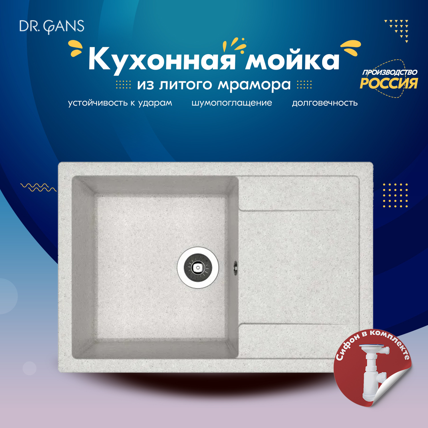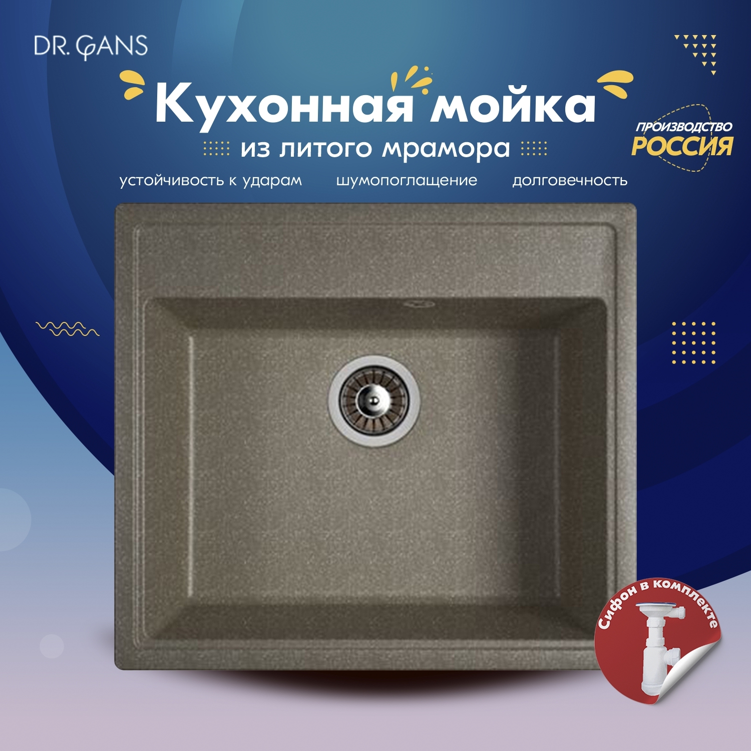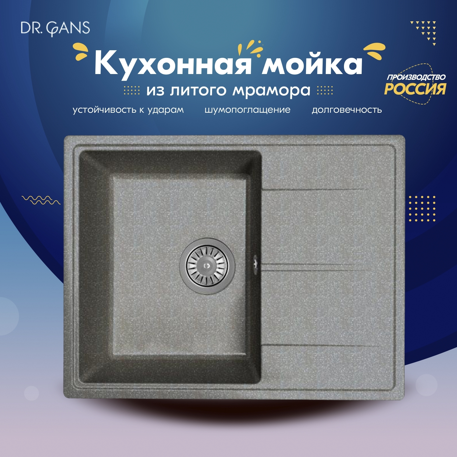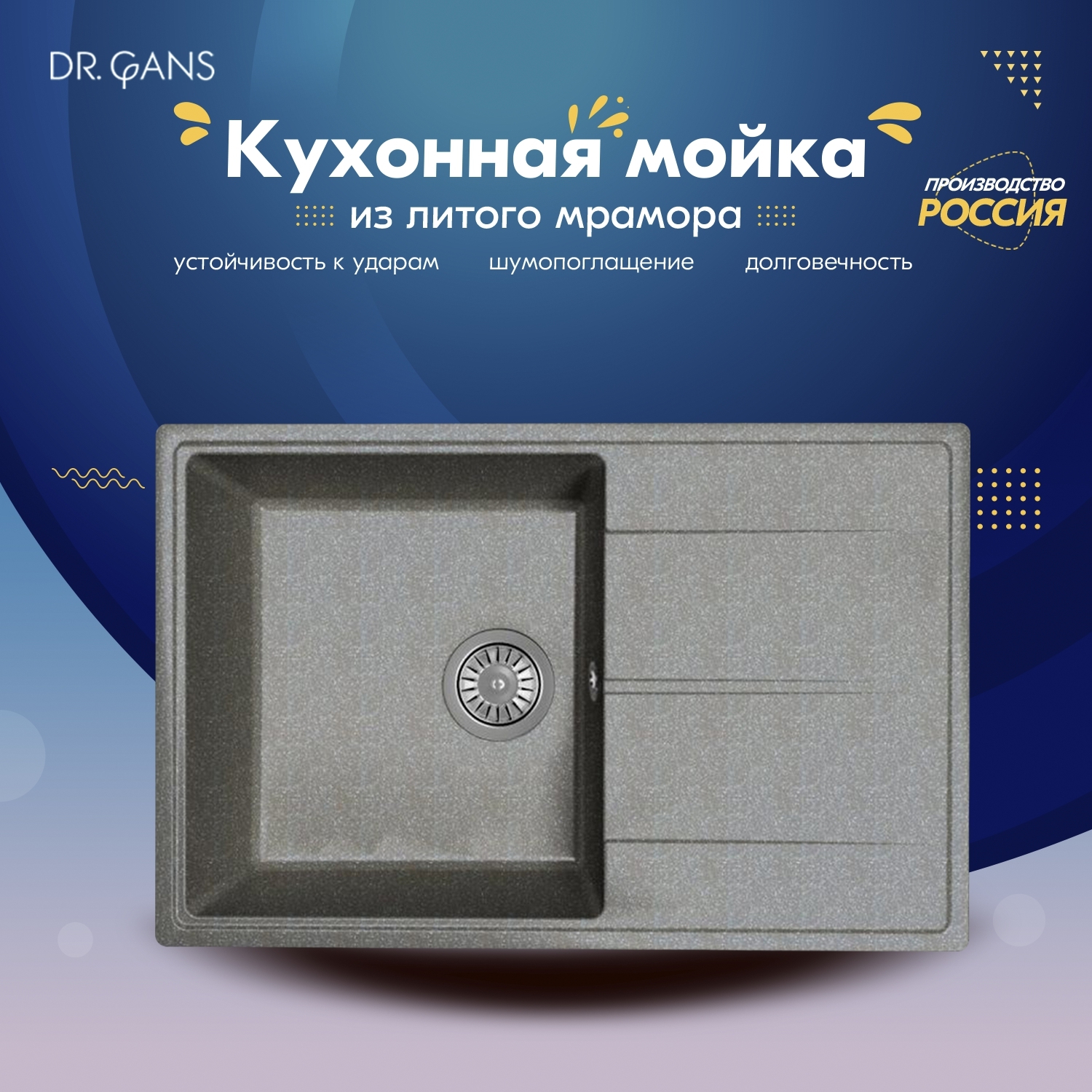 Каменная мойка для кухни врезная Dr. Gans ТЕХНО-860, цвет серый, 860х510х200 мм / раковина для кухни