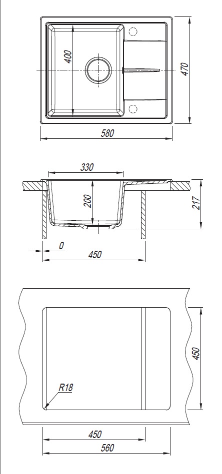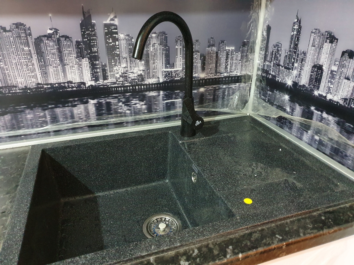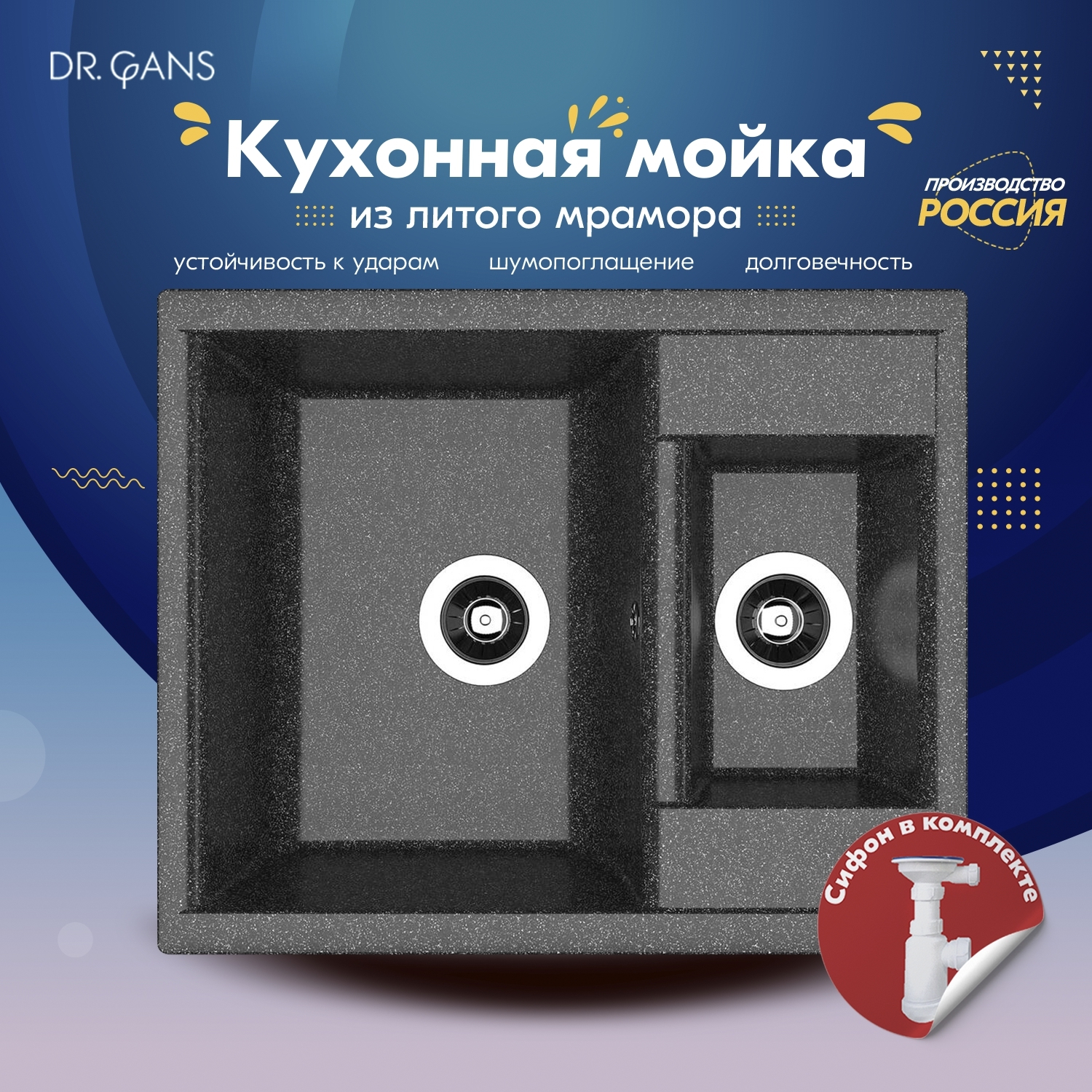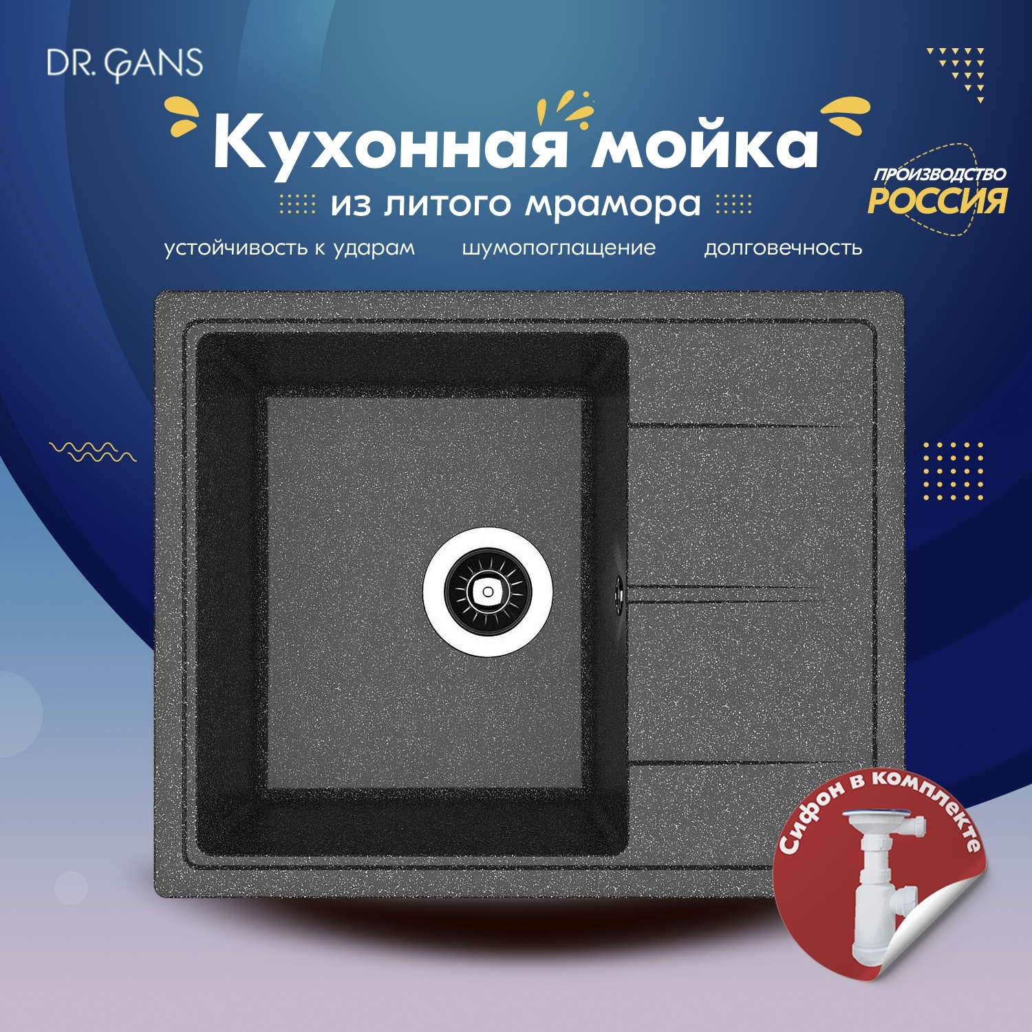 Каменная мойка для кухни врезная Dr. Gans НИКА-580, цвет черный, 580х470х200 мм / раковина для кухни