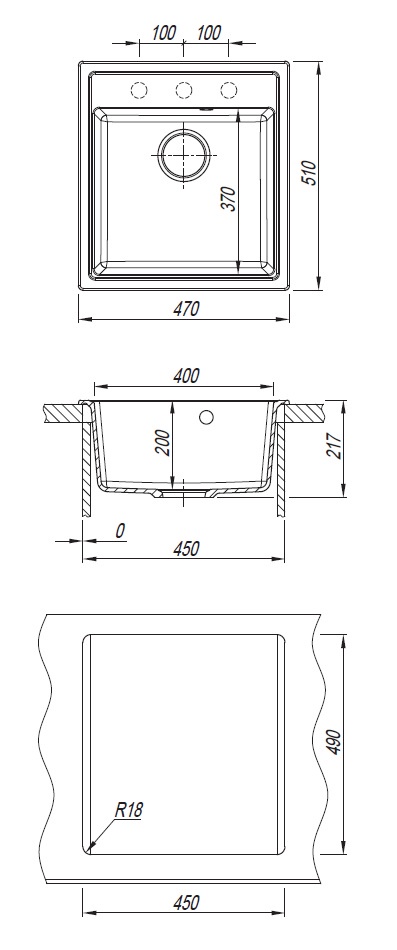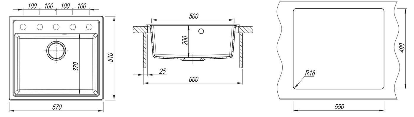 Каменная мойка для кухни врезная Dr. Gans НИКА-570, цвет черный, 570х510х200 мм / раковина для кухни