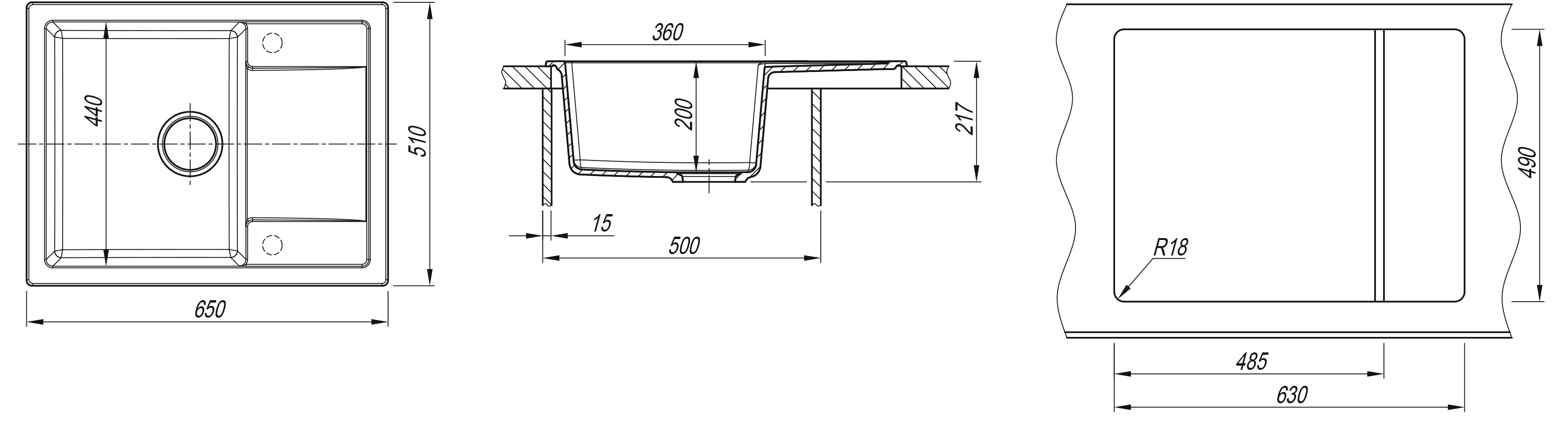 Кухонная мойка каменная DR.GANS ТЕХНО 650 черный