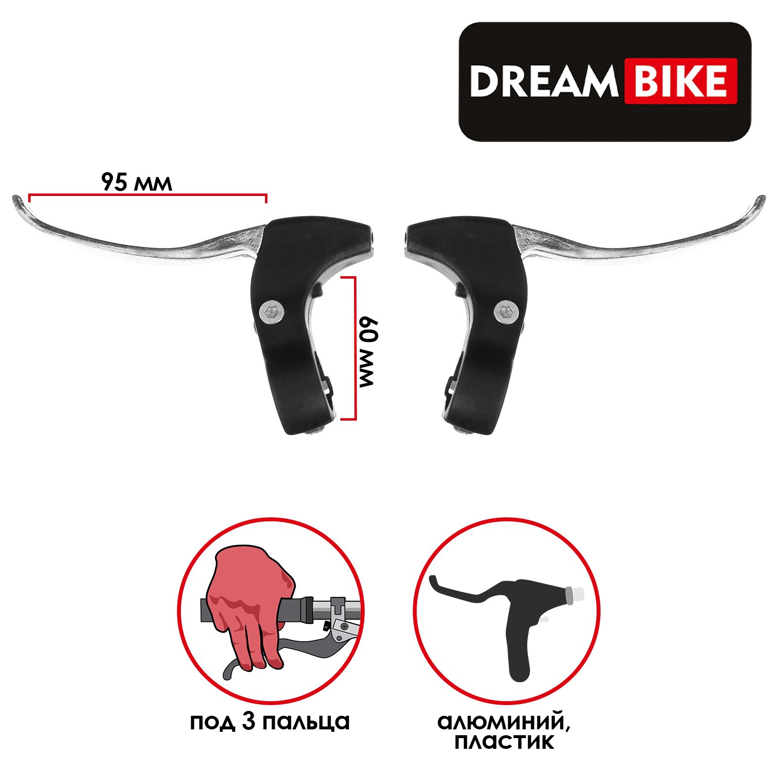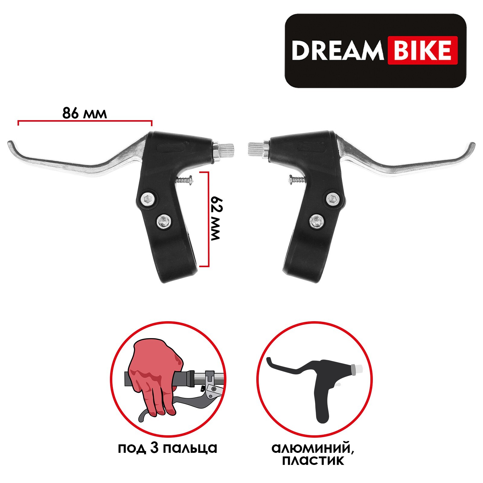 Тормозные ручки Dream Bike, цвет черный, серебристый