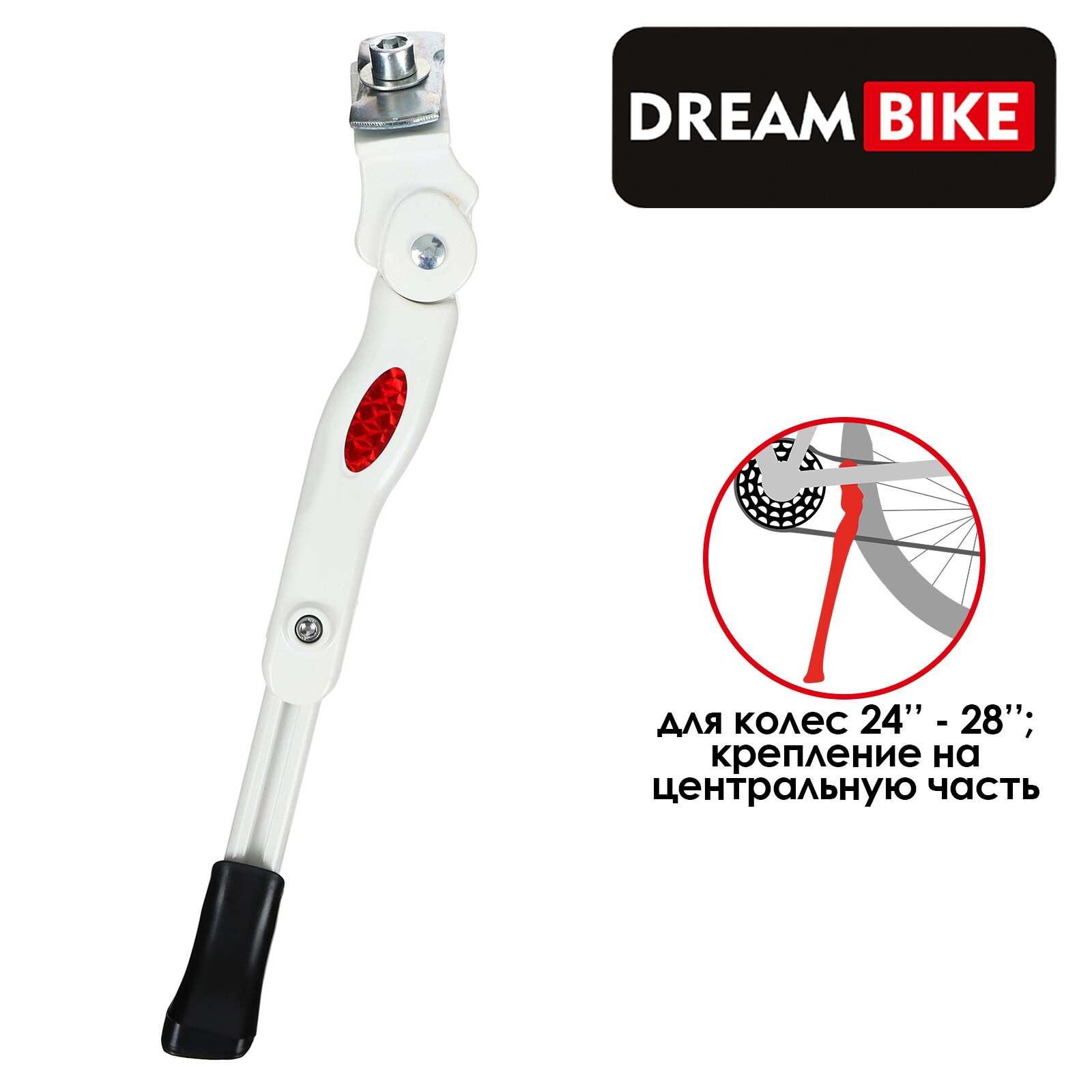 Подножка Dream Bike, для колес диаметром 24"-28", центральная, алюминий, цвет белый