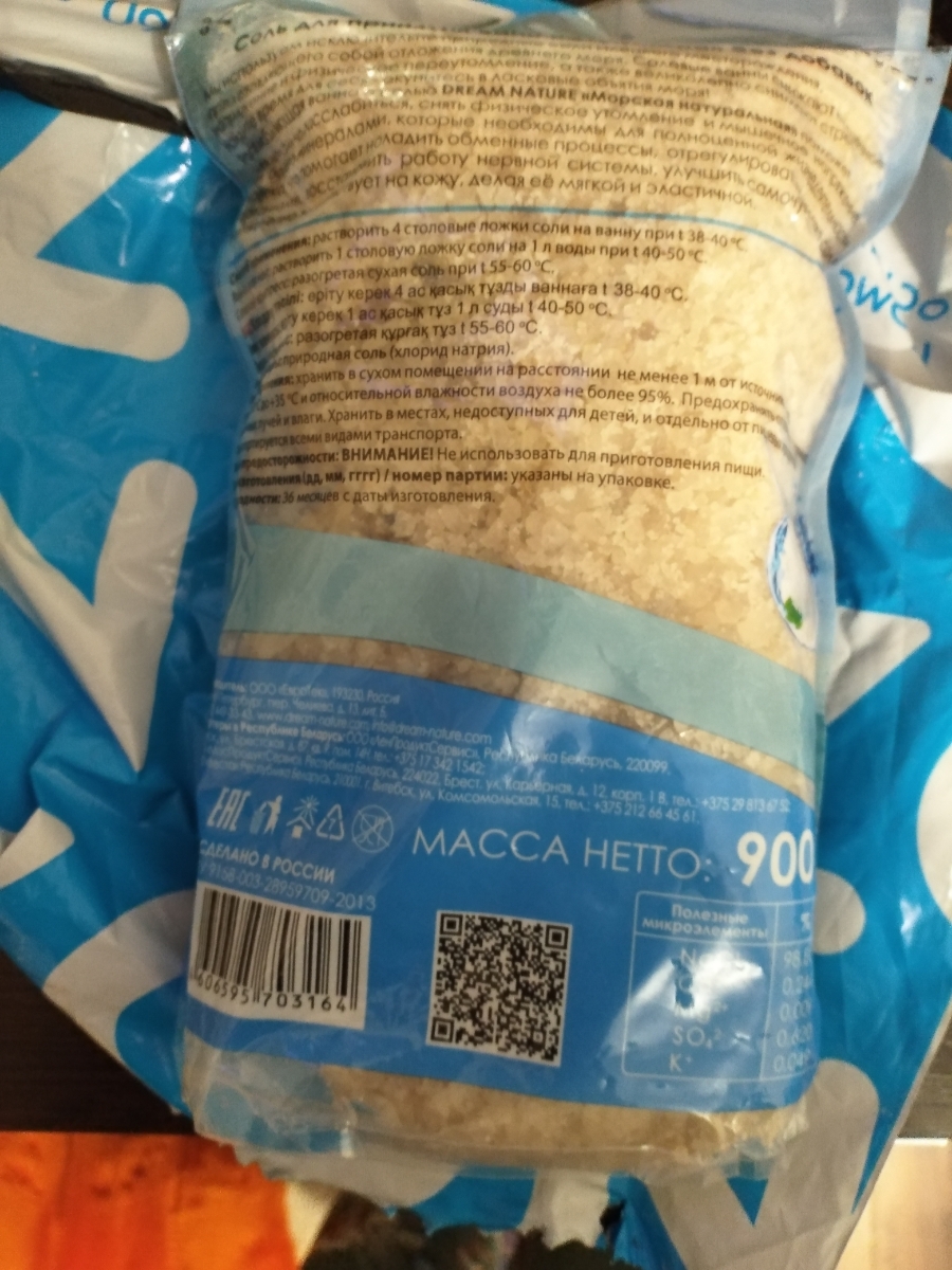 Соль для ванн DREAM NATURE "Морская натуральная", 900 г