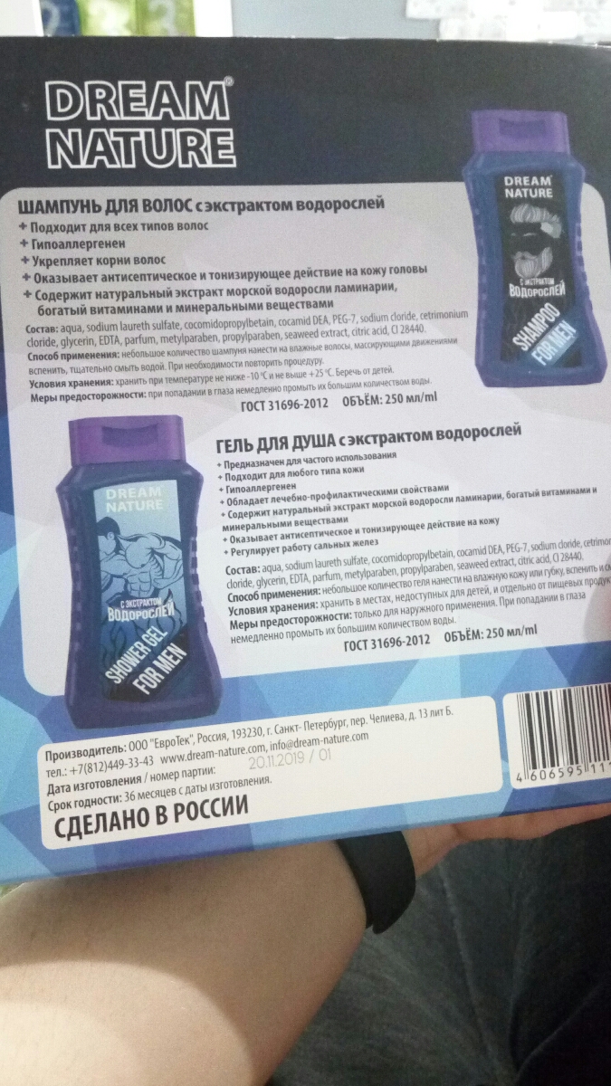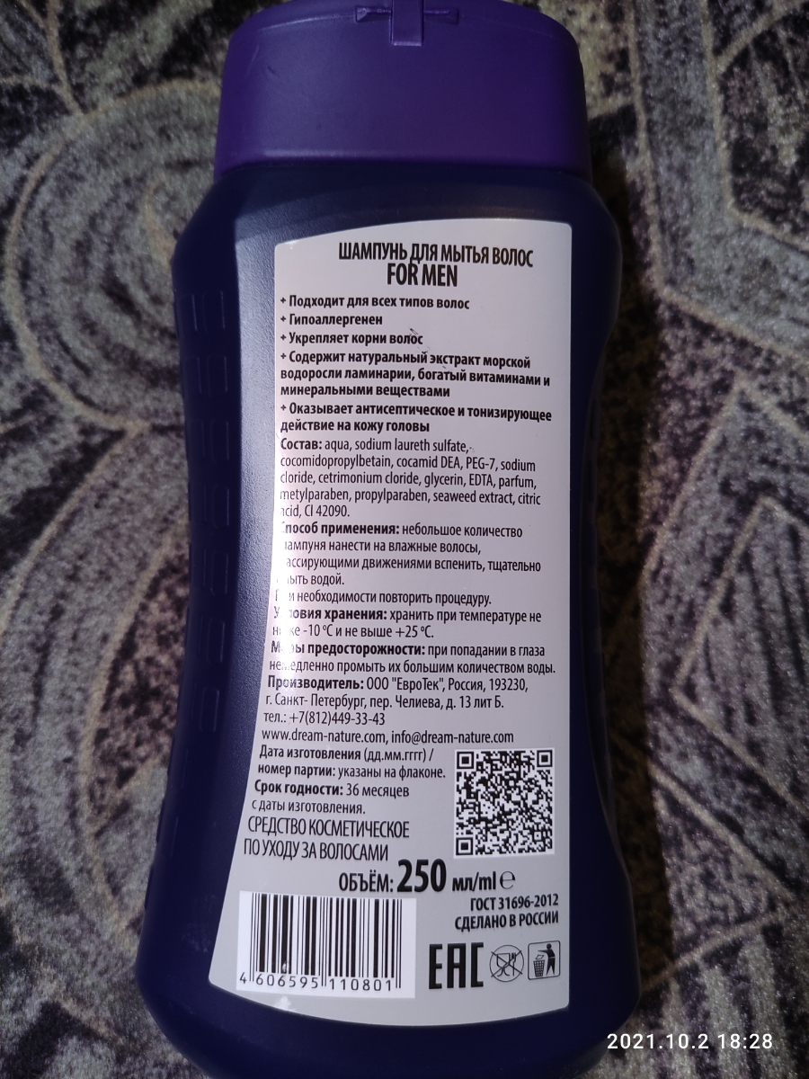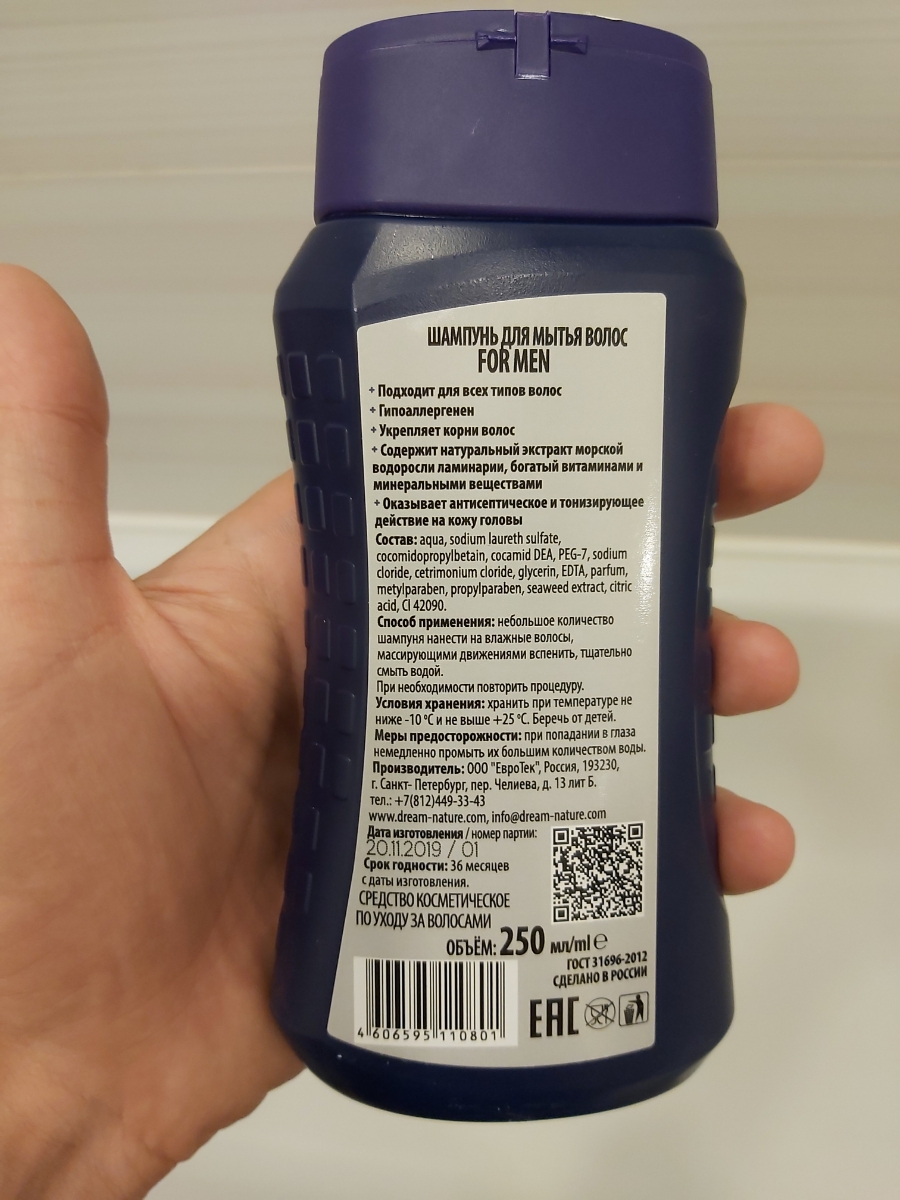 Dream Nature Шампунь для волос мужской с экстрактом водорослей, 250 мл
