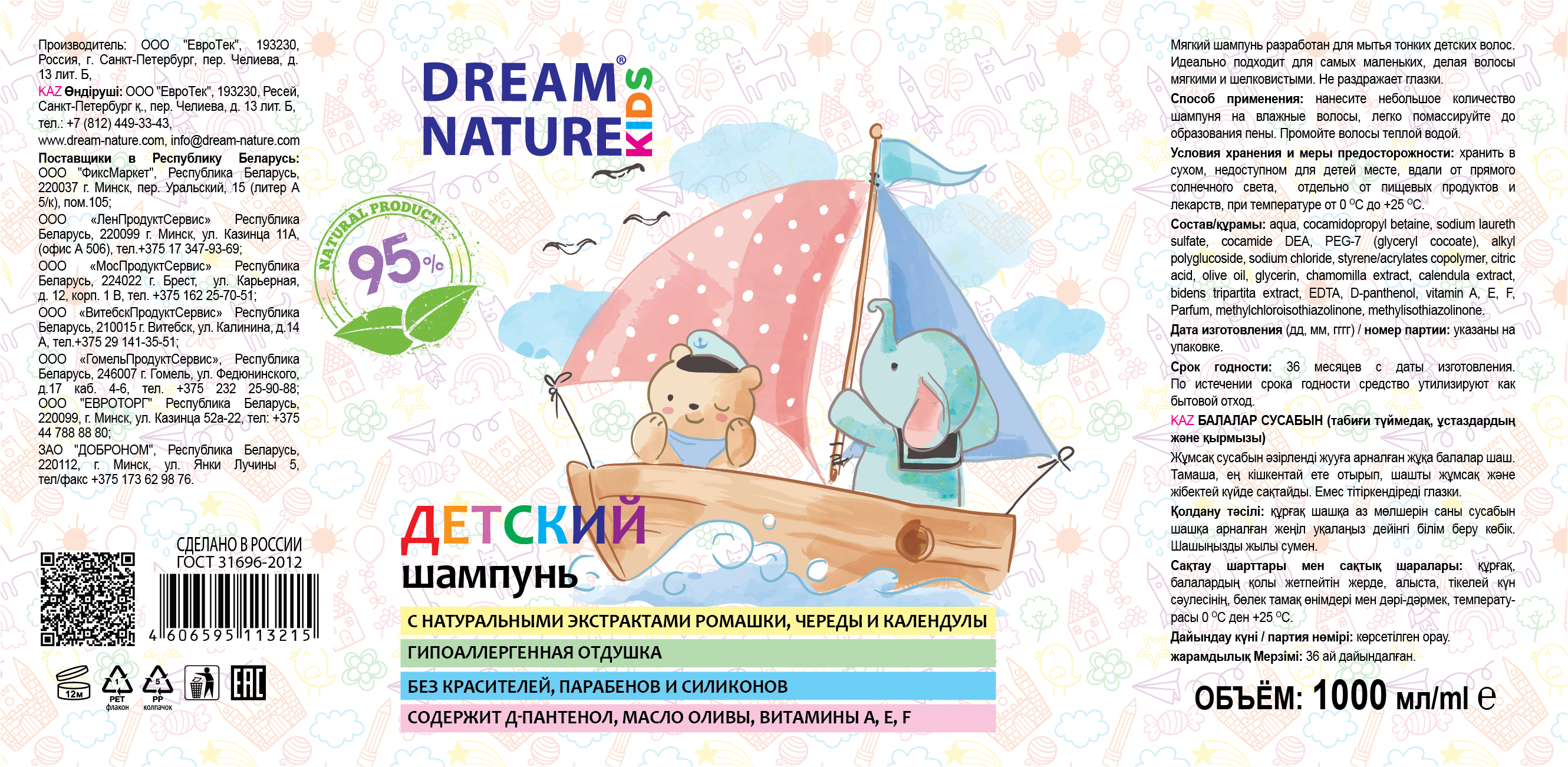 Dream Nature Шампунь Мицеллярный "Идеальные волосы", с дозатором 800 мл
